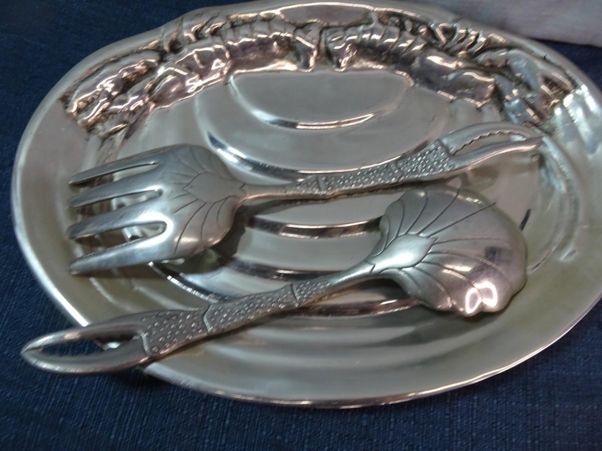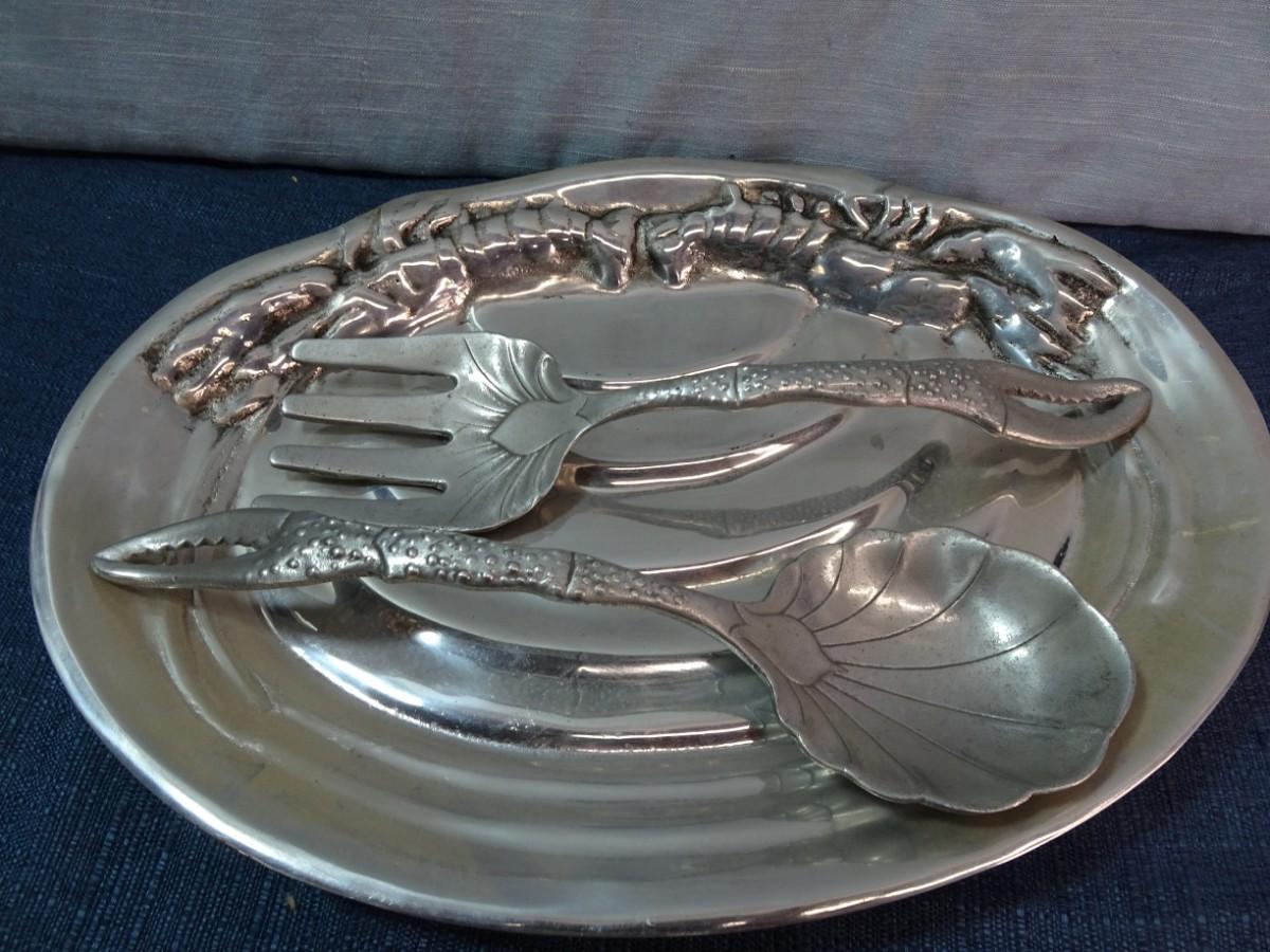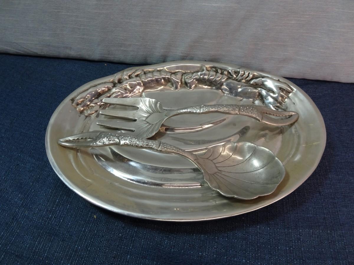 LOT 536. LOBSTER PLATE WITH SERVING SPOON AND FORK