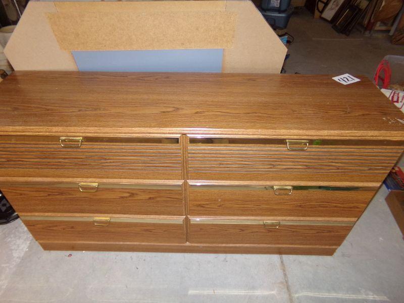 LOT 421 SIX DRAWER DRESSER WITH MIRROR