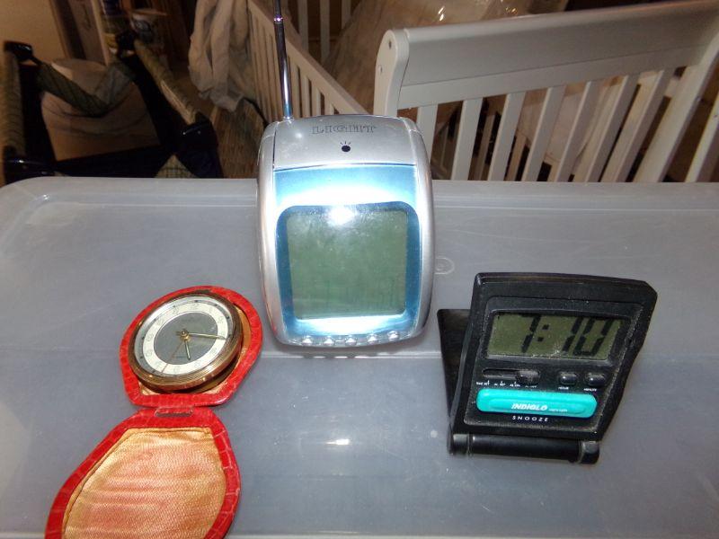 TIMIX-INDIGLO ALARM CLOCK, RENSIE CLOCK, AND RADIO WITH A LIGHT.