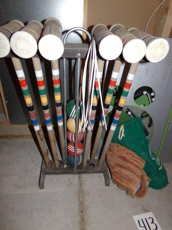 LOT 413 CROQUET SET AND OTHER SPORTING GOODS
