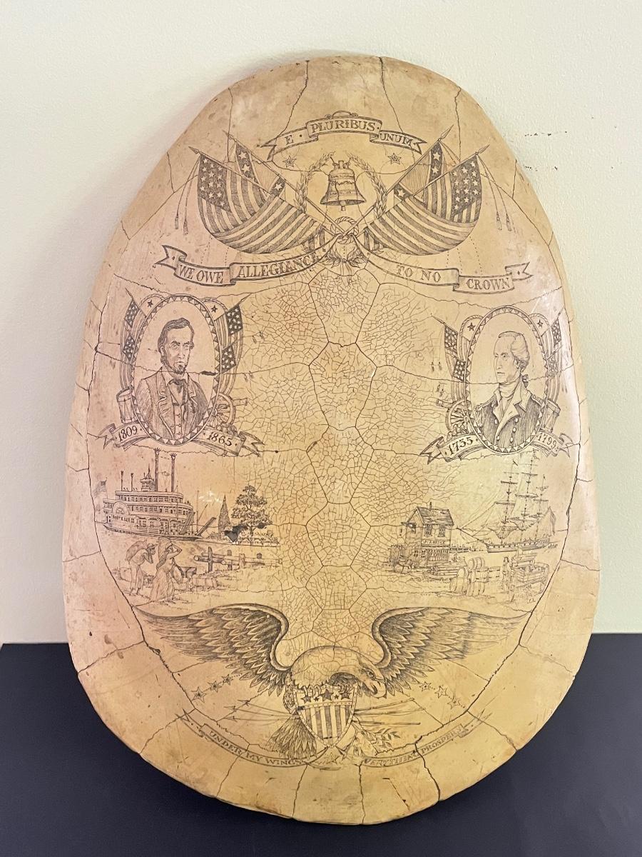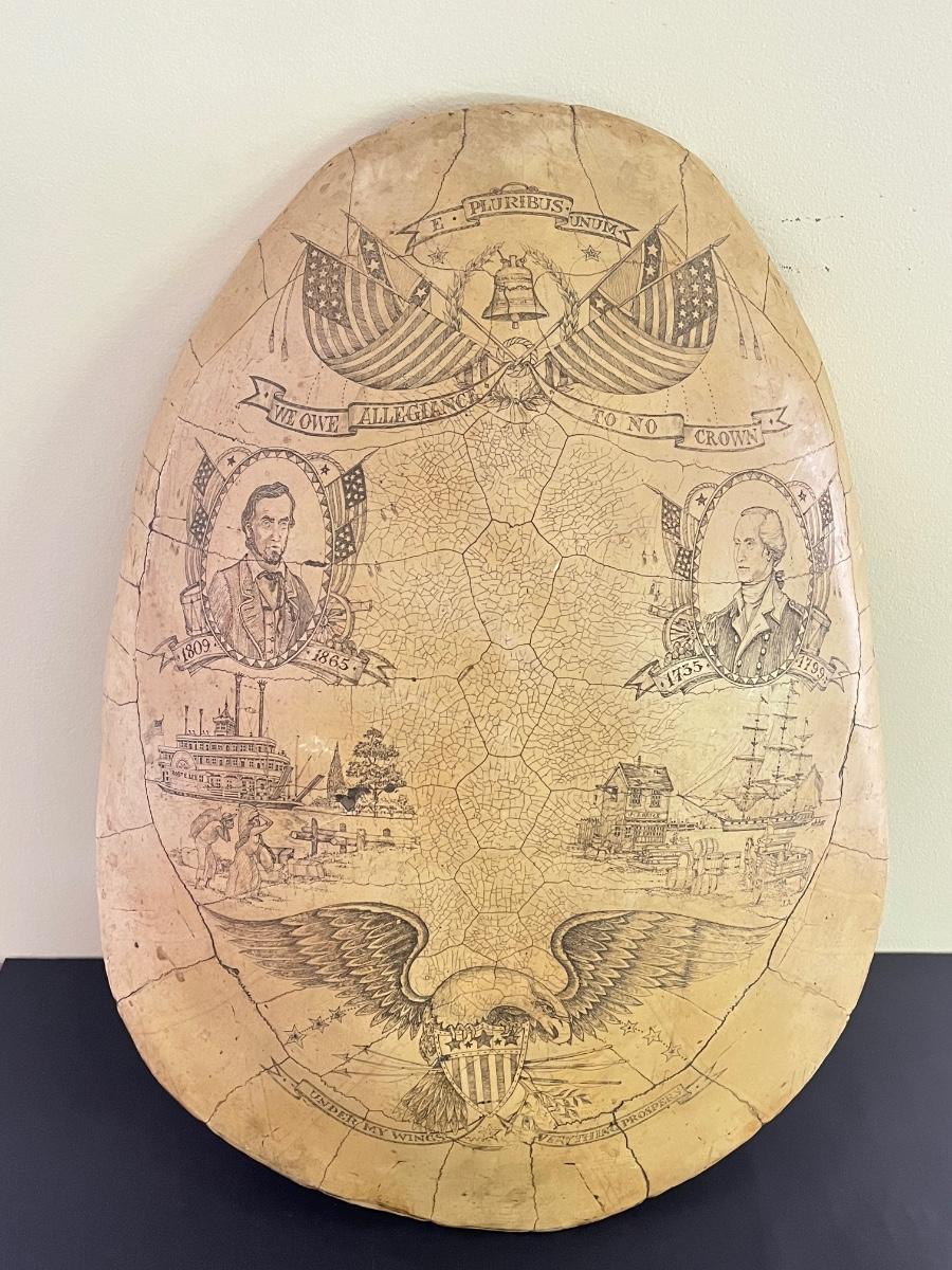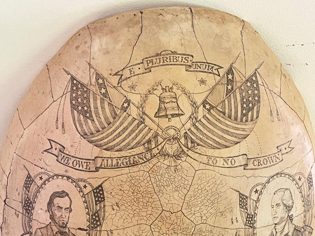 LOT 536D: Faux Turtle Shell Replica Srimshaw Washington and Lincoln Patriotic Display