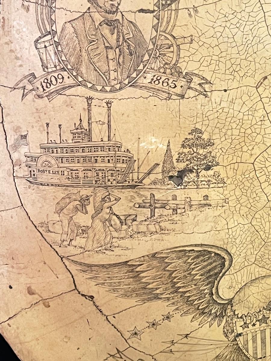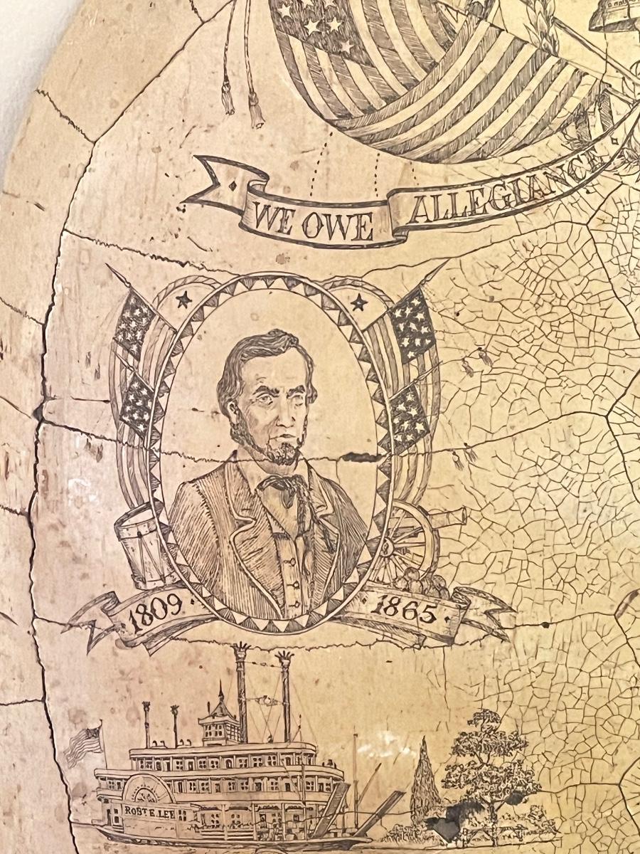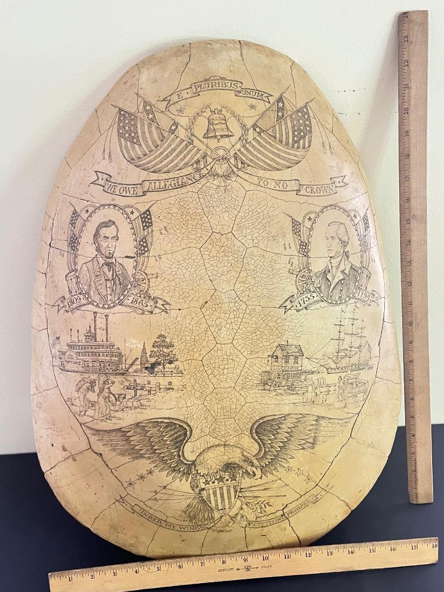 LOT 536D: Faux Turtle Shell Replica Srimshaw Washington and Lincoln Patriotic Display