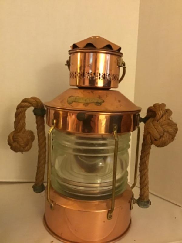 1 )Vintage Copper Ankerlicht Ship Anchor Ice Bucket 14” T to top of handle 16” with clear glass