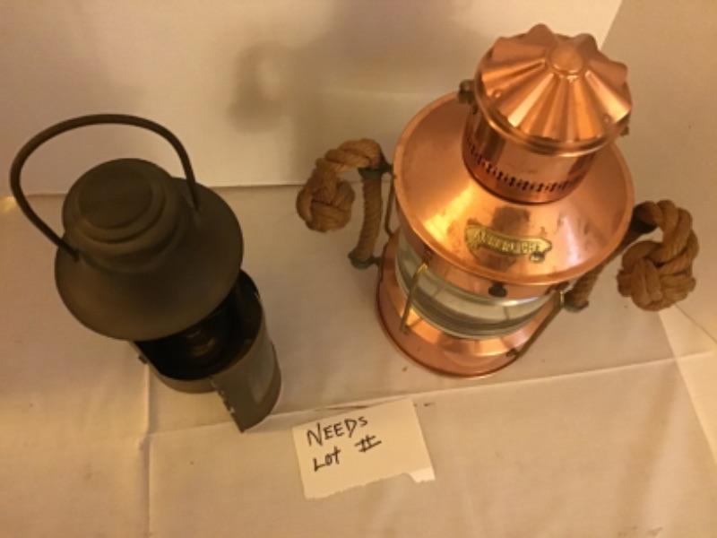 LOT # 538 Vintage 14" Ankerlicht Ship Anchor Lamp & Small Lantern