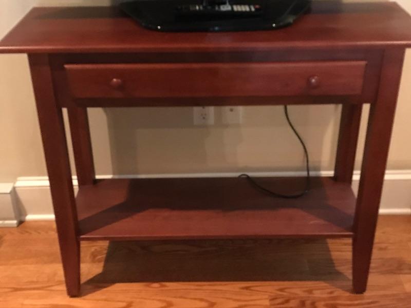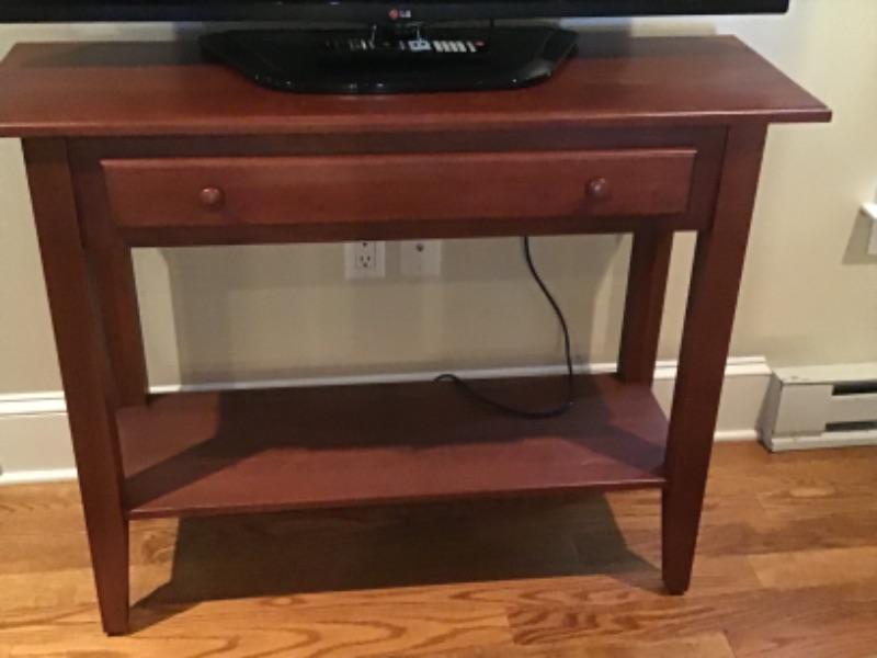 Wooden sofa table/TV stand style table, it has 1 drawer and 1 shelf