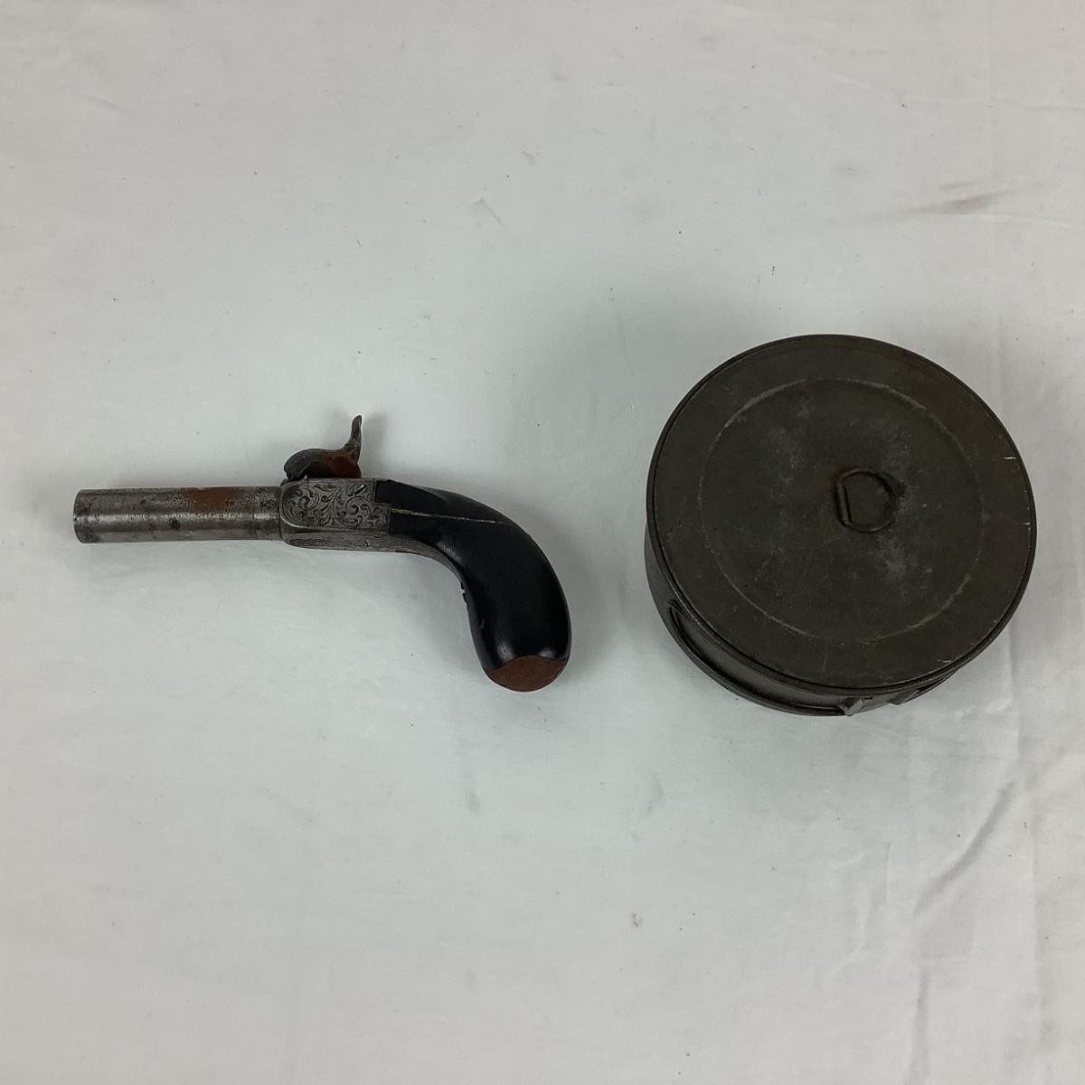 Lot. 5383  Antique Pocket Pistol, Serial # 48 / Antique World War II Cooking Kit
