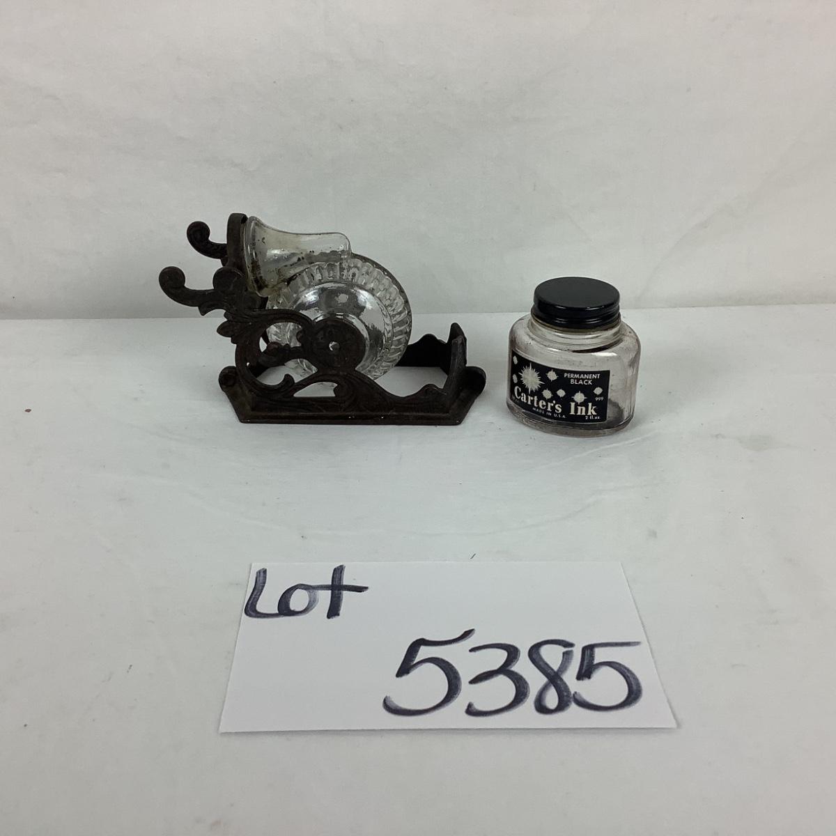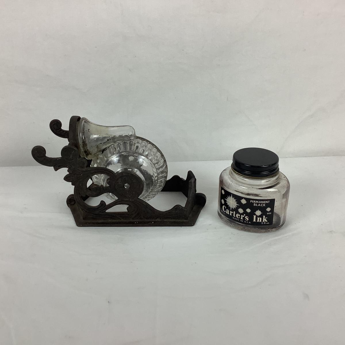 Lot. 5385. Antique Glass and Iron Shrimp Nautilus Inkwell