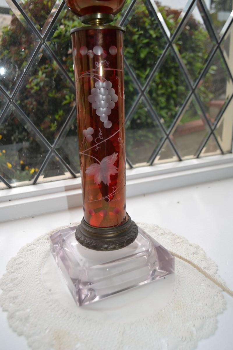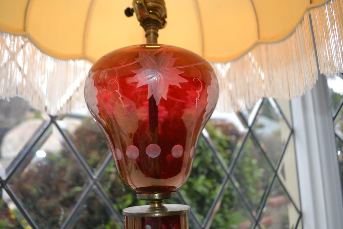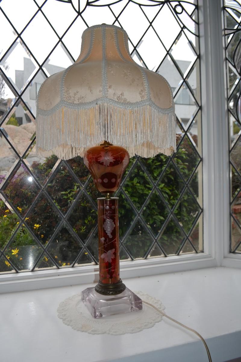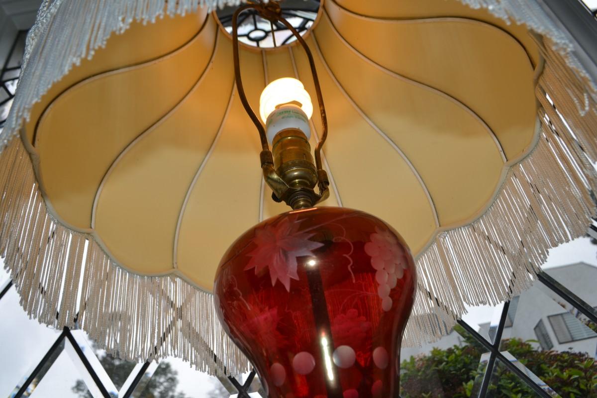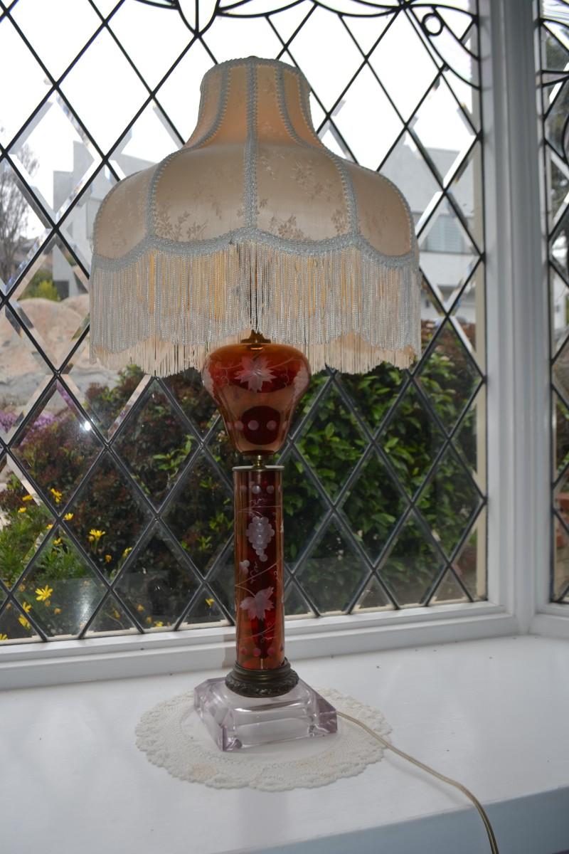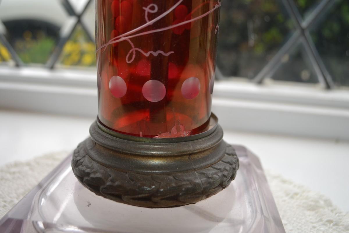 LOT 539. VINTAGE RUBY GLASS TABLE LAMP