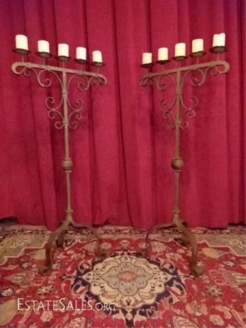 LOT 53B: PAIR 5 LIGHT IRON FLOOR CANDELABRA