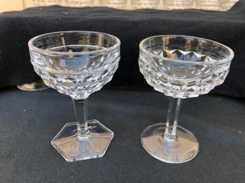 Lot 53L. Fostoria American Stemware, 12 Sherbet Glasses, round bases and hexagonal bases “” $30