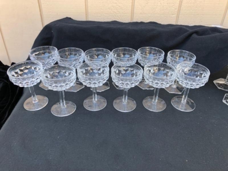 Lot 53L. Fostoria American Stemware, 12 Sherbet Glasses, round bases and hexagonal bases “” $24