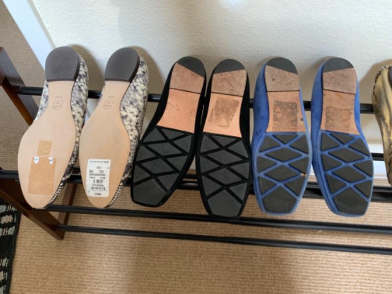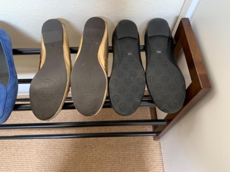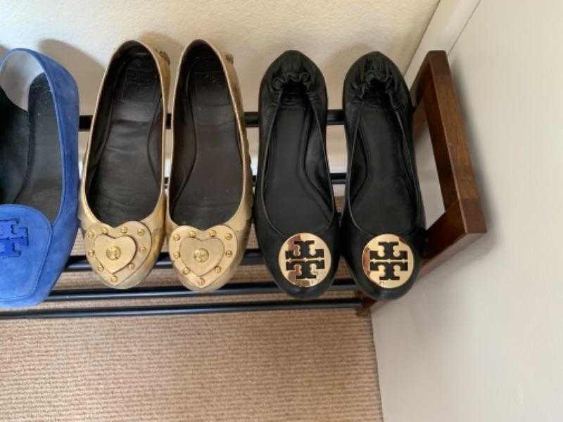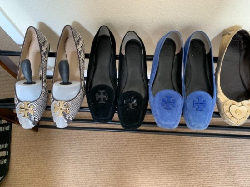 Lot 53U. Five pairs of Tory Burch flats“”leather, suede, snake skin“”size 10.5 medium--$150