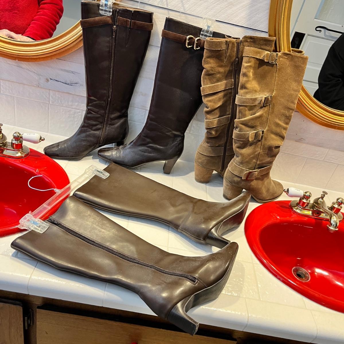 8. Sizes are approximate, you can estimate as our lot number signs are 3.5" long. Also we use an 18" & 36" measuring stick. We try on certain things to do actual measurements. No guarantees on actual sizes, we try our best!