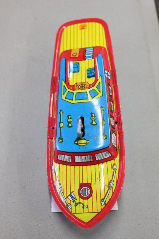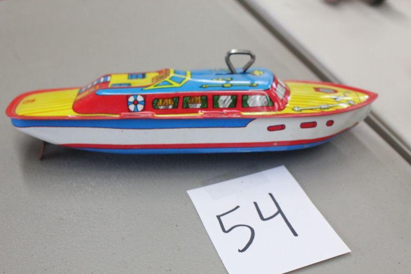 Lot 54 1950's J. Chein 9in Tin Wind Up Boat (works)