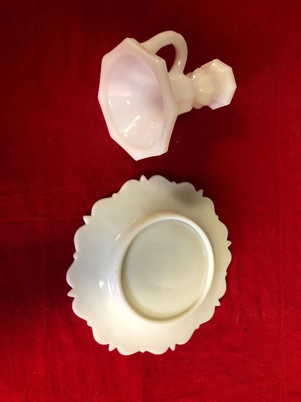 Lot 54 2 Milk  Glass Candle Stick and plate  with Native American