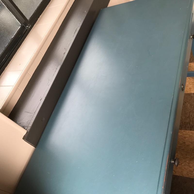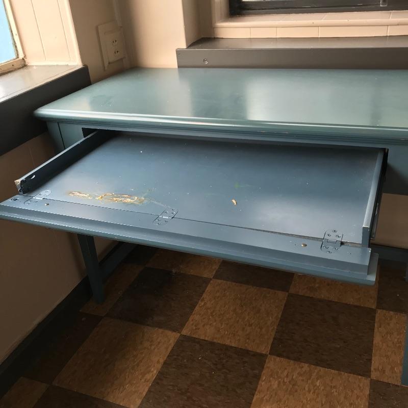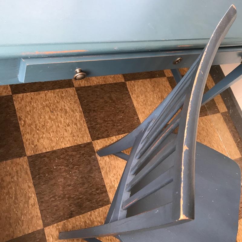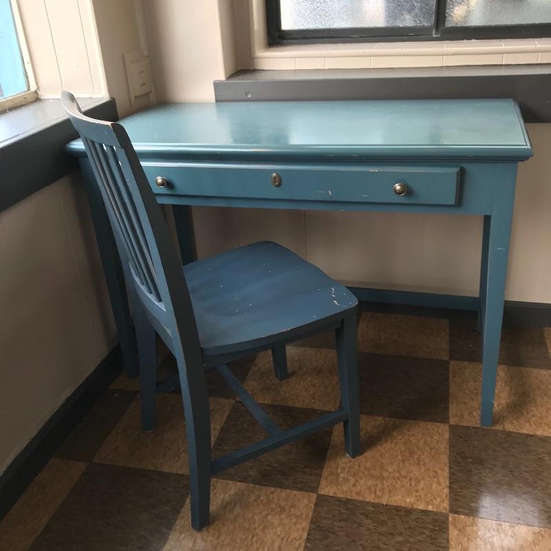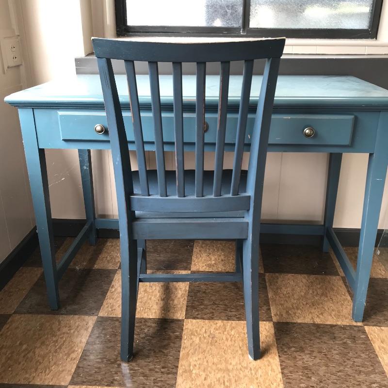 Lot 54 - Blue Wooden Desk and Chair