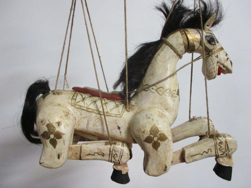 It is a hand carved wooden puppet horse.