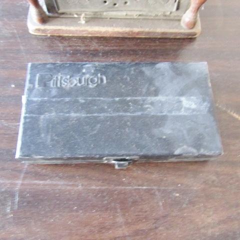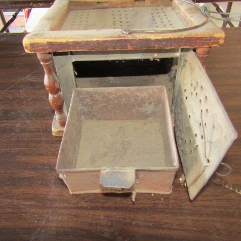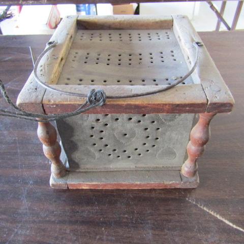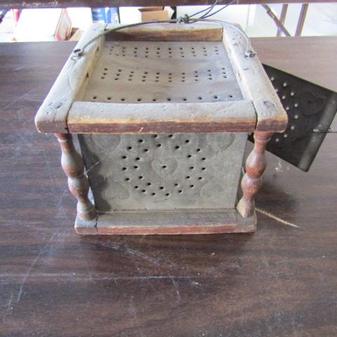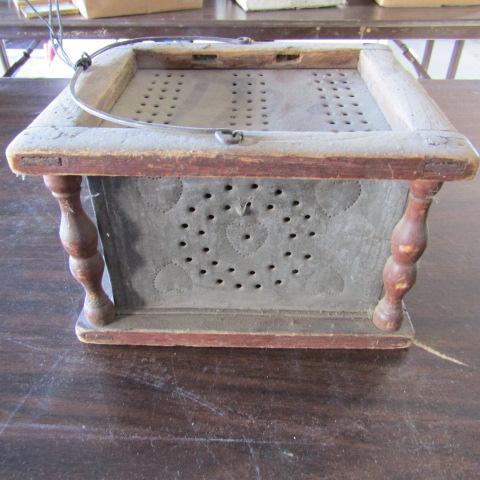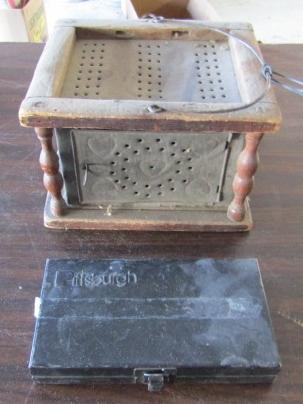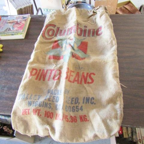 SMALL METAL BOX & COLUMBINE PINTO BEAN BURLAP BAG