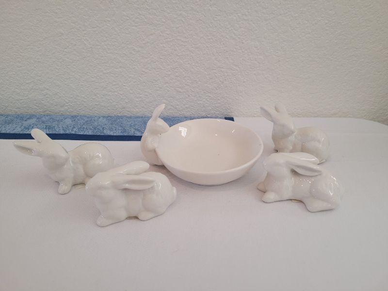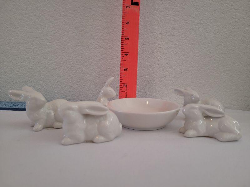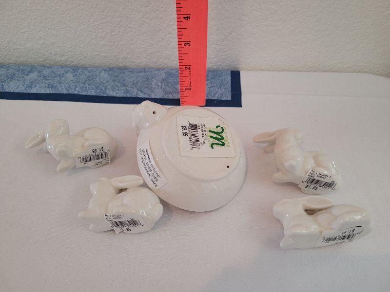 Lot 54: New Little White Rabbits and Rabbit looking in Shallow Bowl