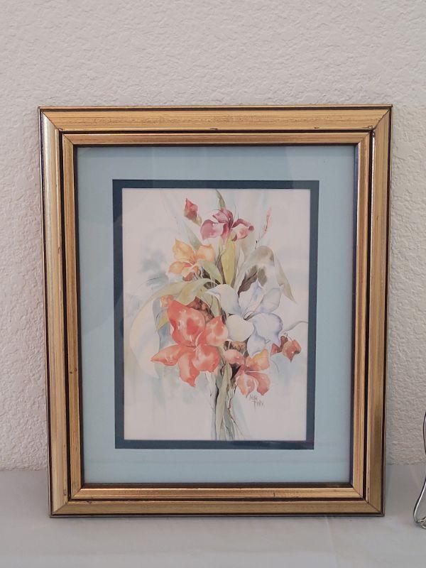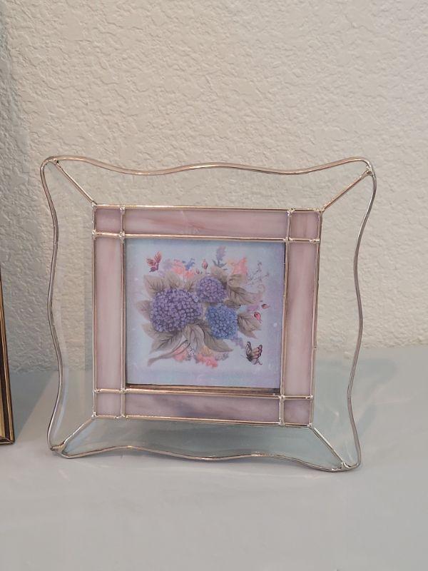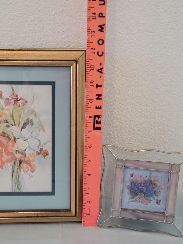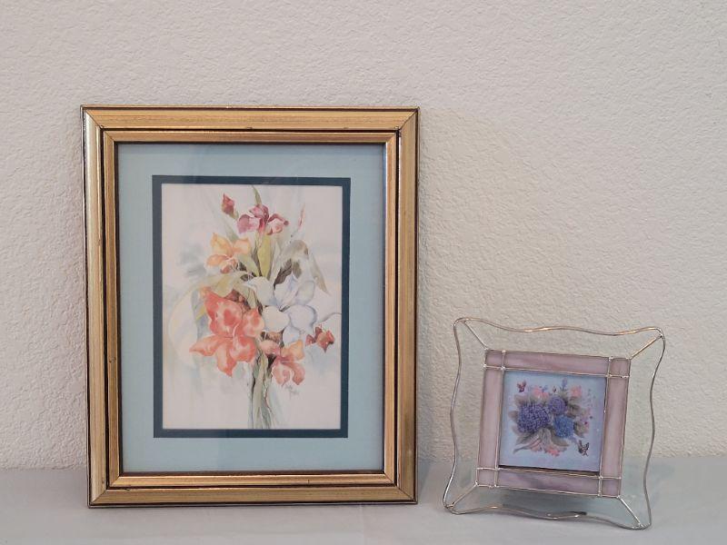 Lot 54: Music Box Stained Glass Framed Floral Print & Gold Framed Floral Print