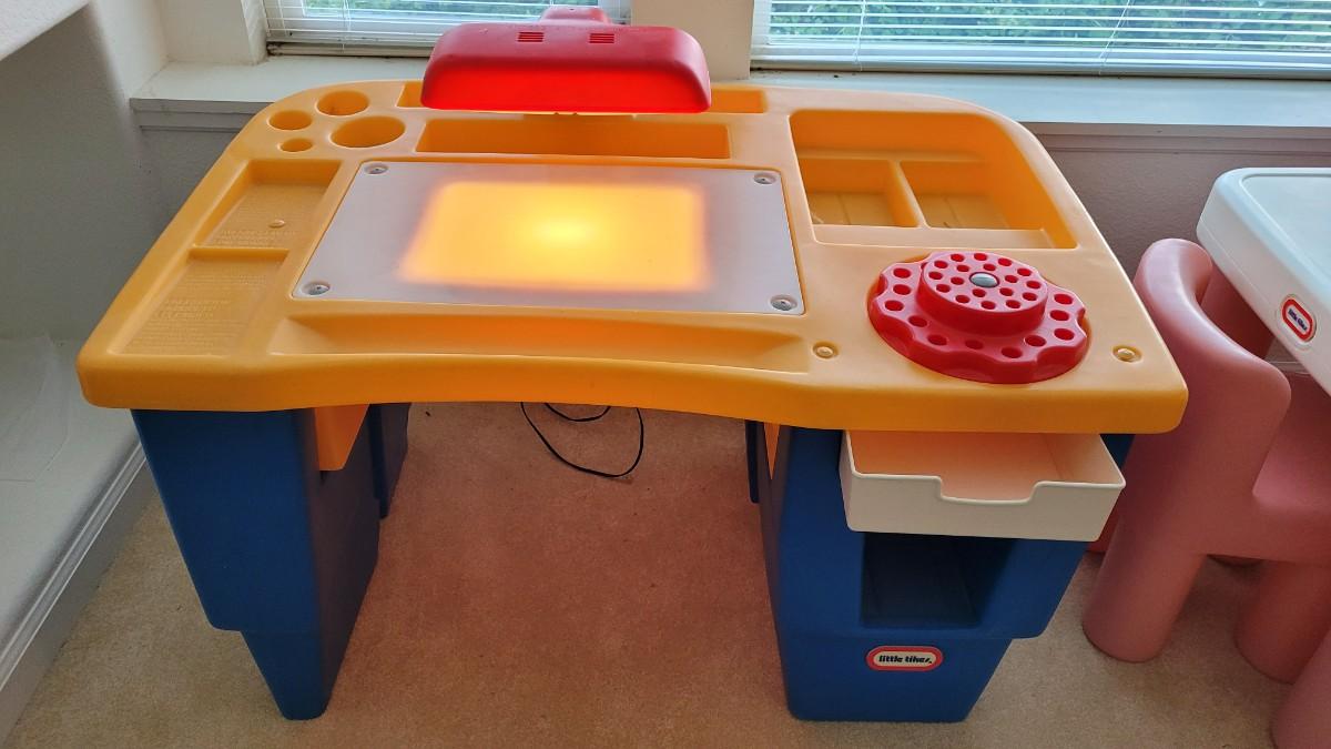 Lot 54: Vintage LITTLE TIKES Drafting Table with Chair - Lights Both Work - ☆ Lamp Base is Damaged