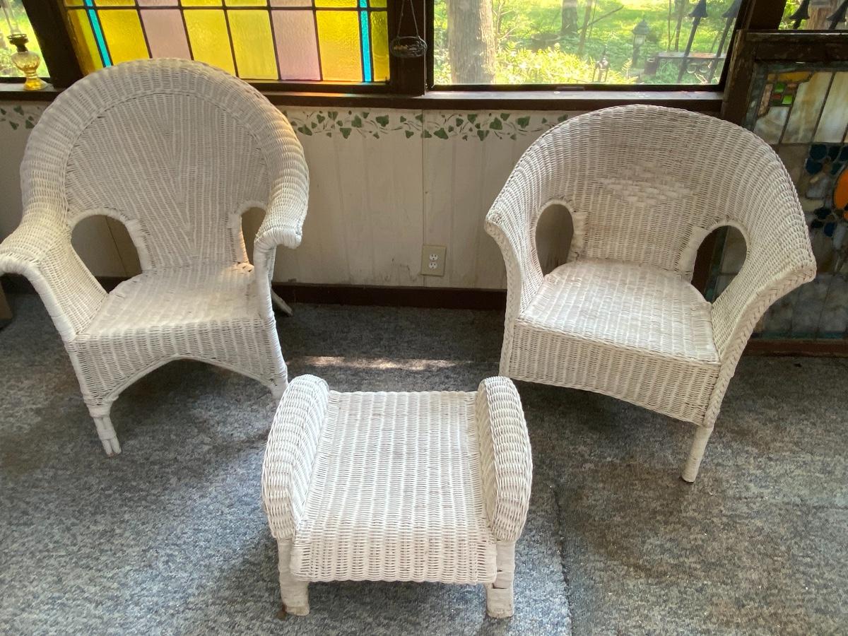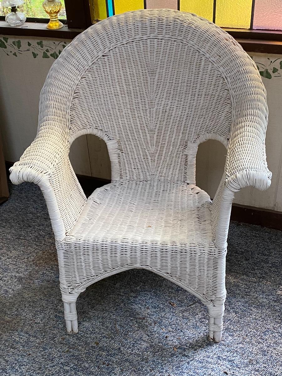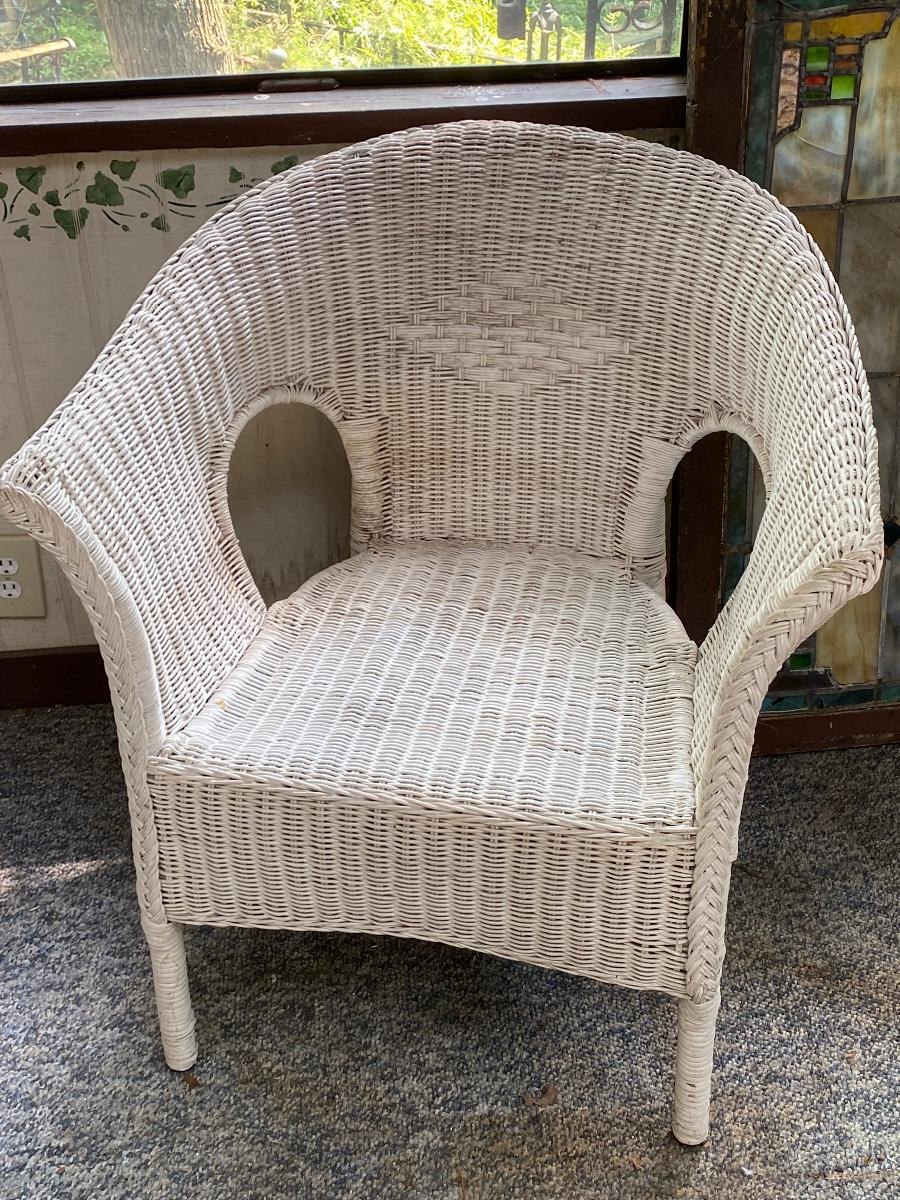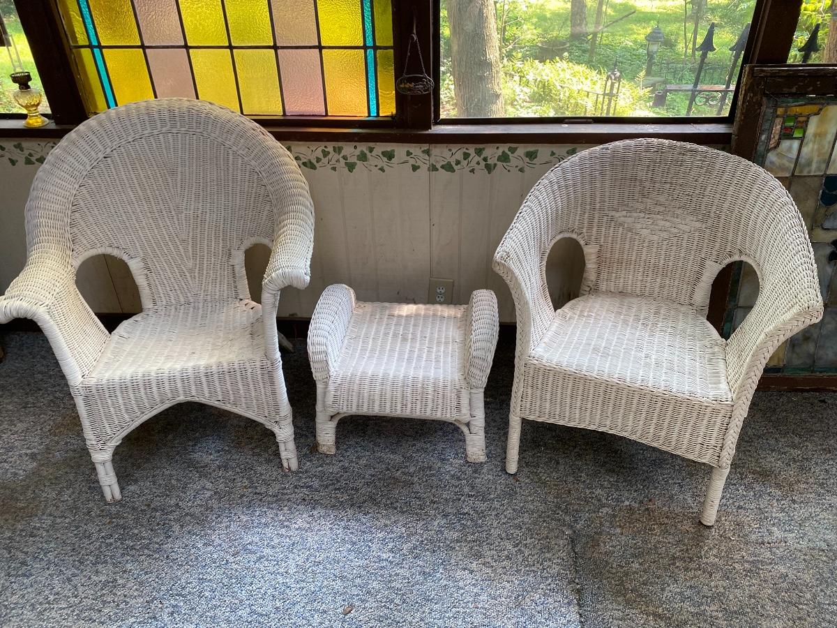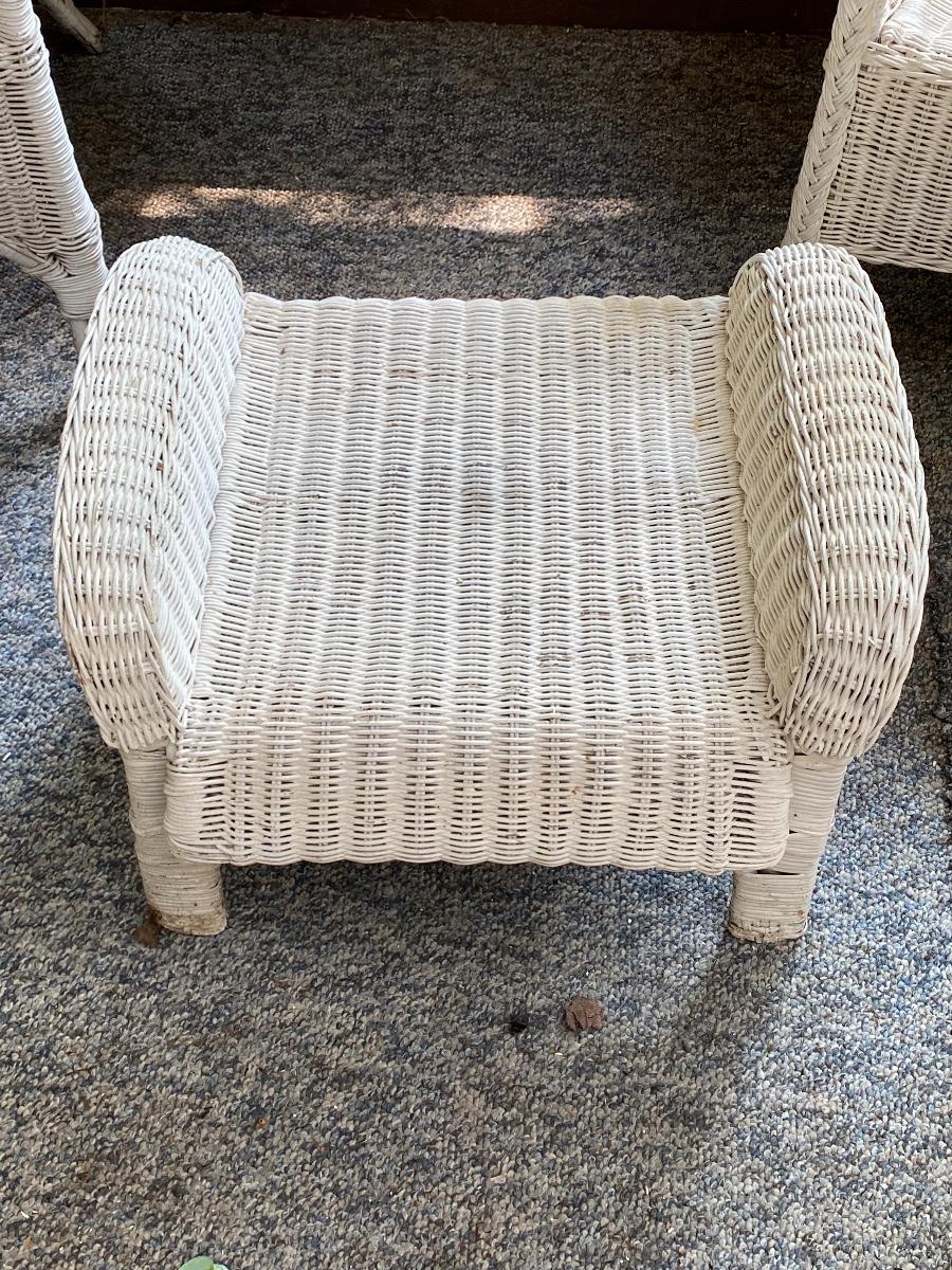 Stored on covered porch but may show wear. Just needs new cushions. Please see pictures as they are the best representation of the item, the condition of the item, and the size of the item.