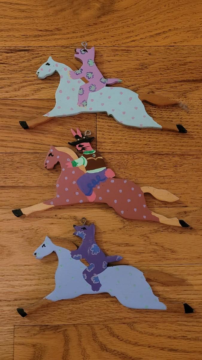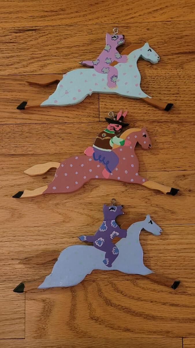 Lot 54: (3) Mexican Folk Art Handpainted Wood Horseand Riders