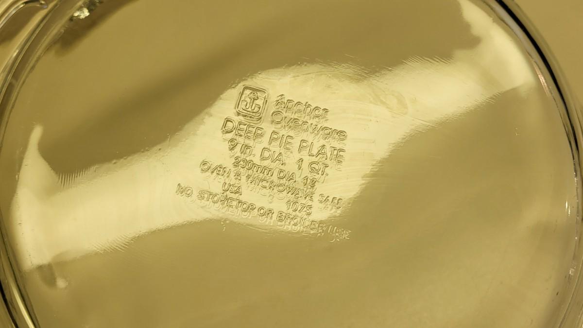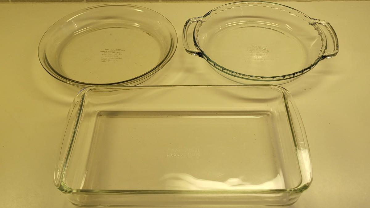 Lot 54: (1) Pyrex Casserole Dish and (2) Anchor Pie Plates