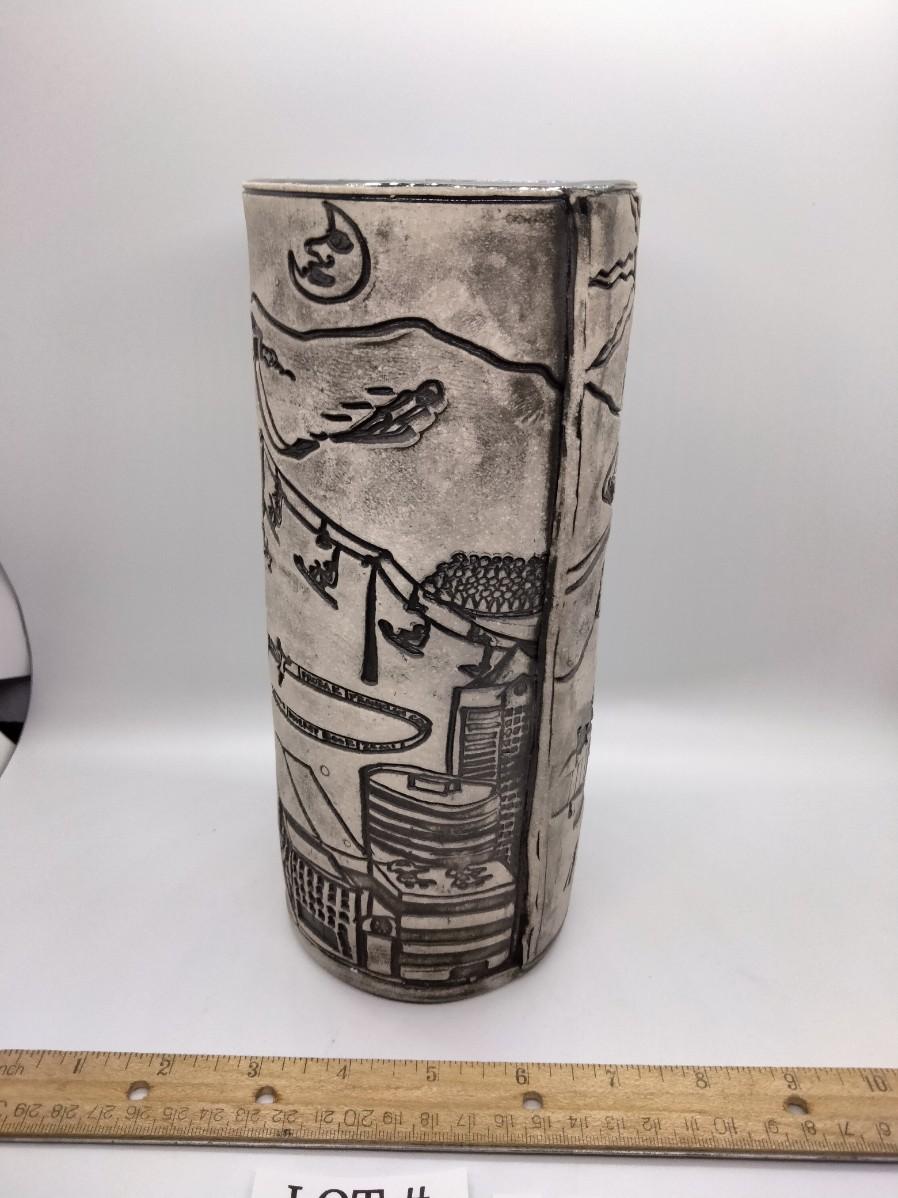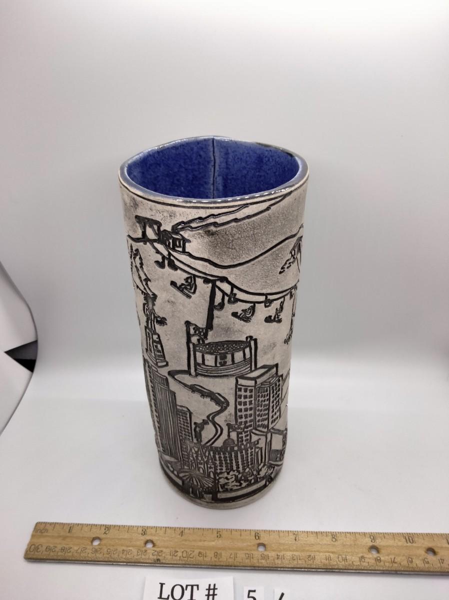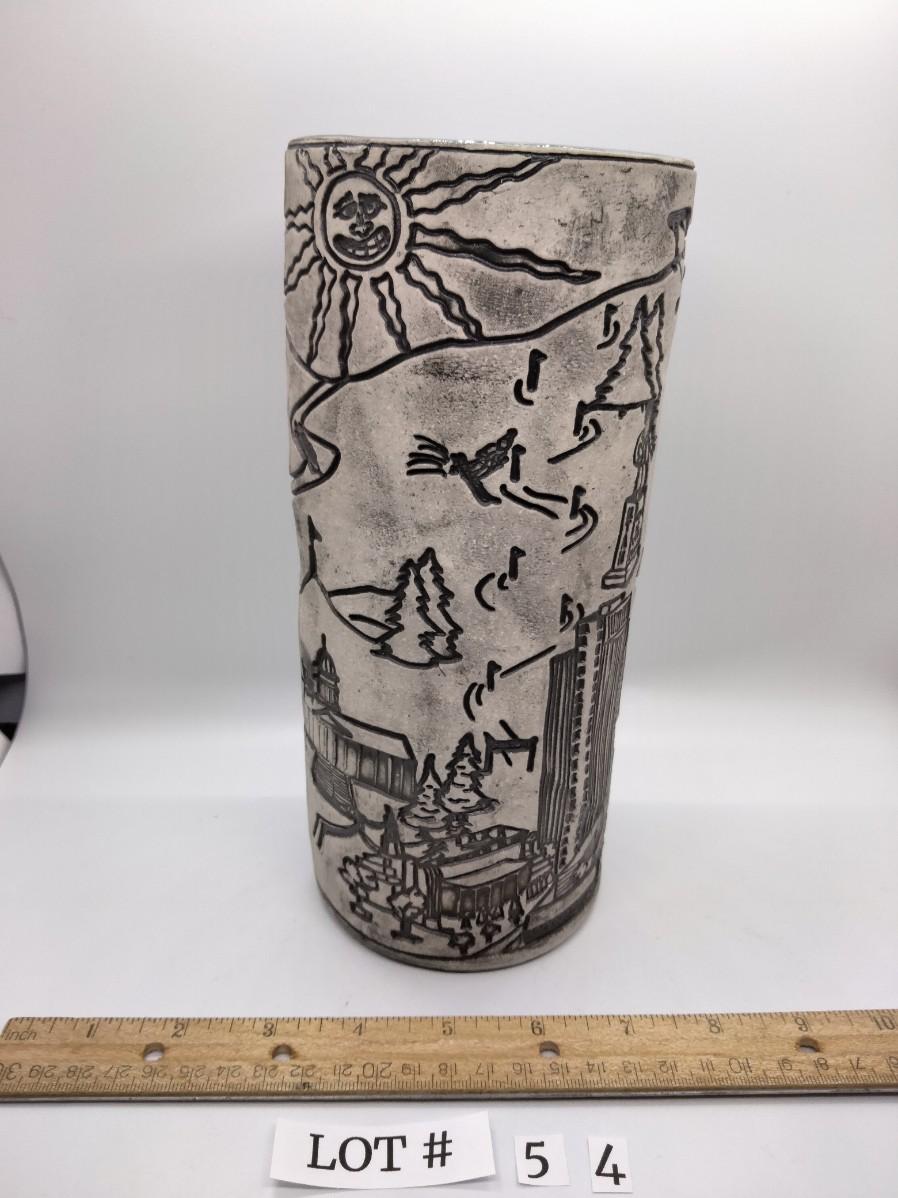 Lot 54 - Awesome Handmade Ceramic Slab Vase Salt Lake Valley Theme