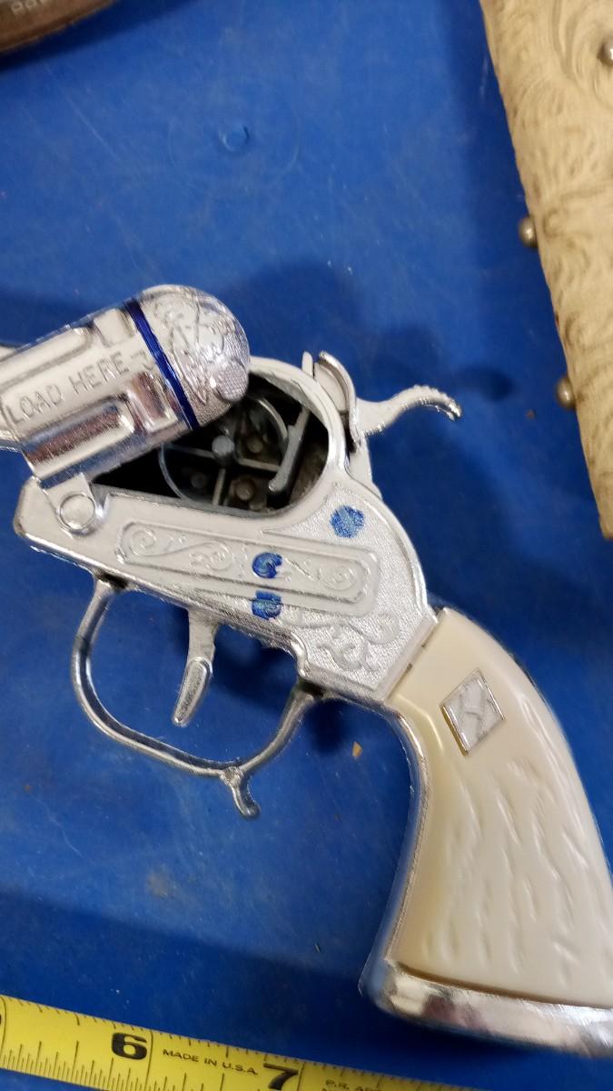 GUN WORKS HAS SOME BLUE DYE ON IT BOX OF CAPS UNOPENED CUFFS NEAT