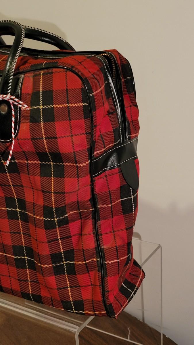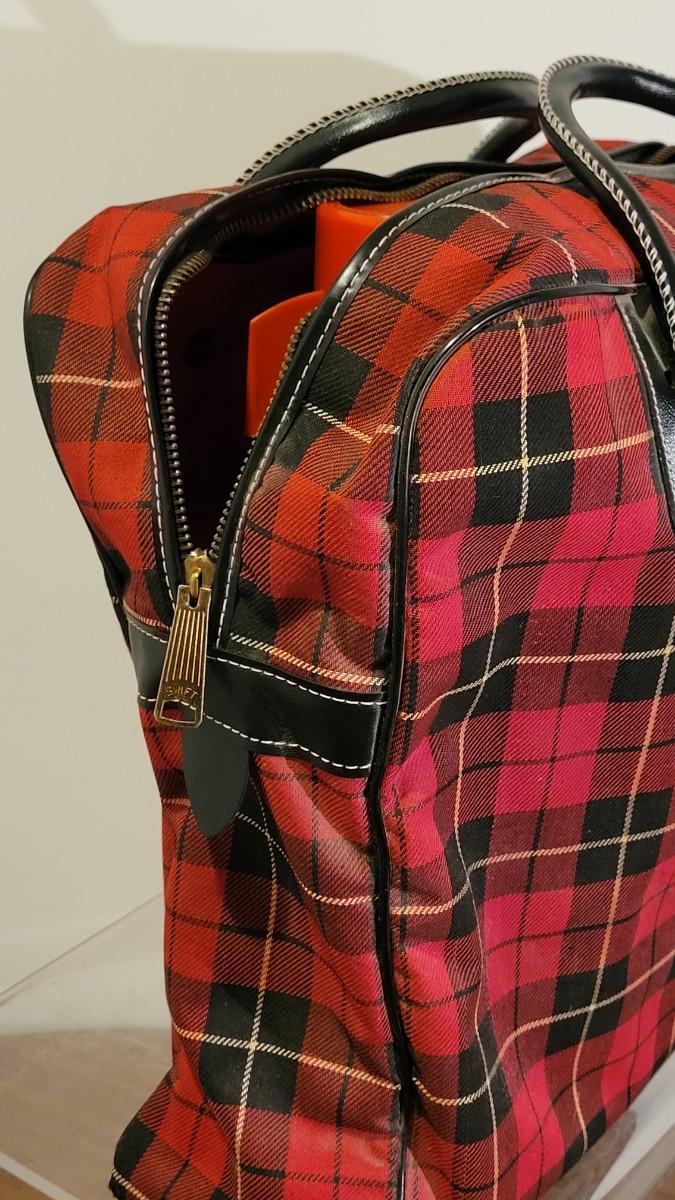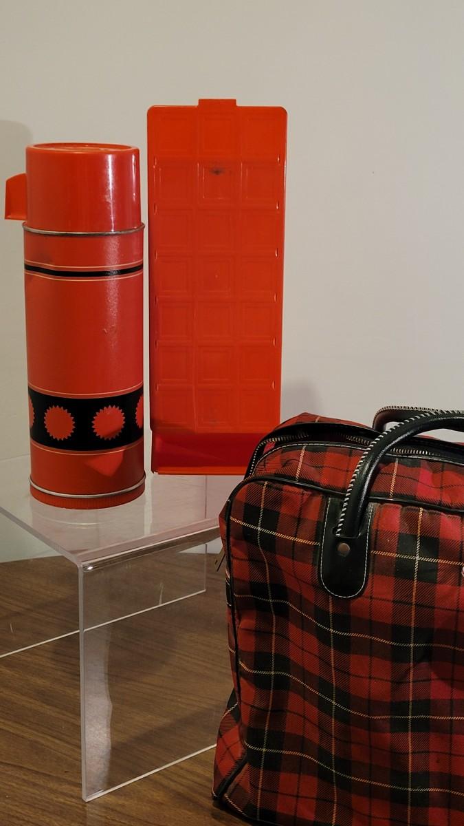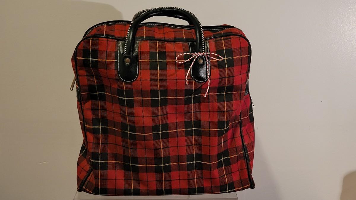 Lot 54: Vintage Red & Black Plaid Carrying Case, Thermos & Box