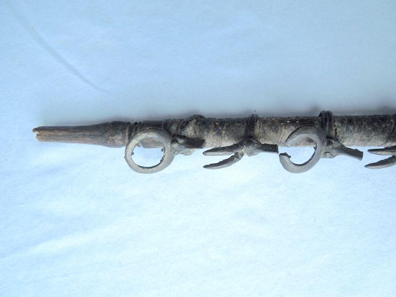 Lot 54: Antique African Ceremonial Staff With Antlered Brass Rings