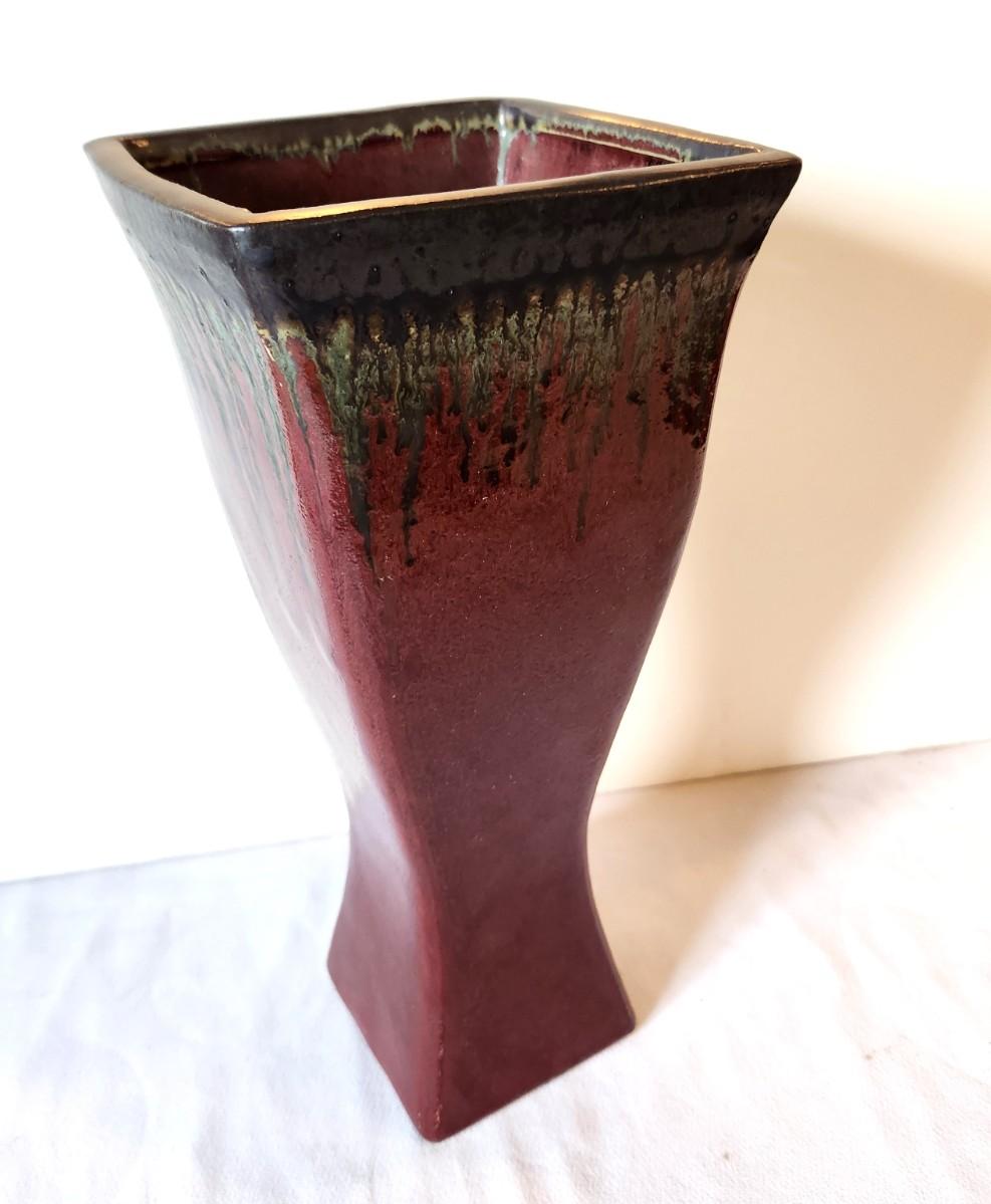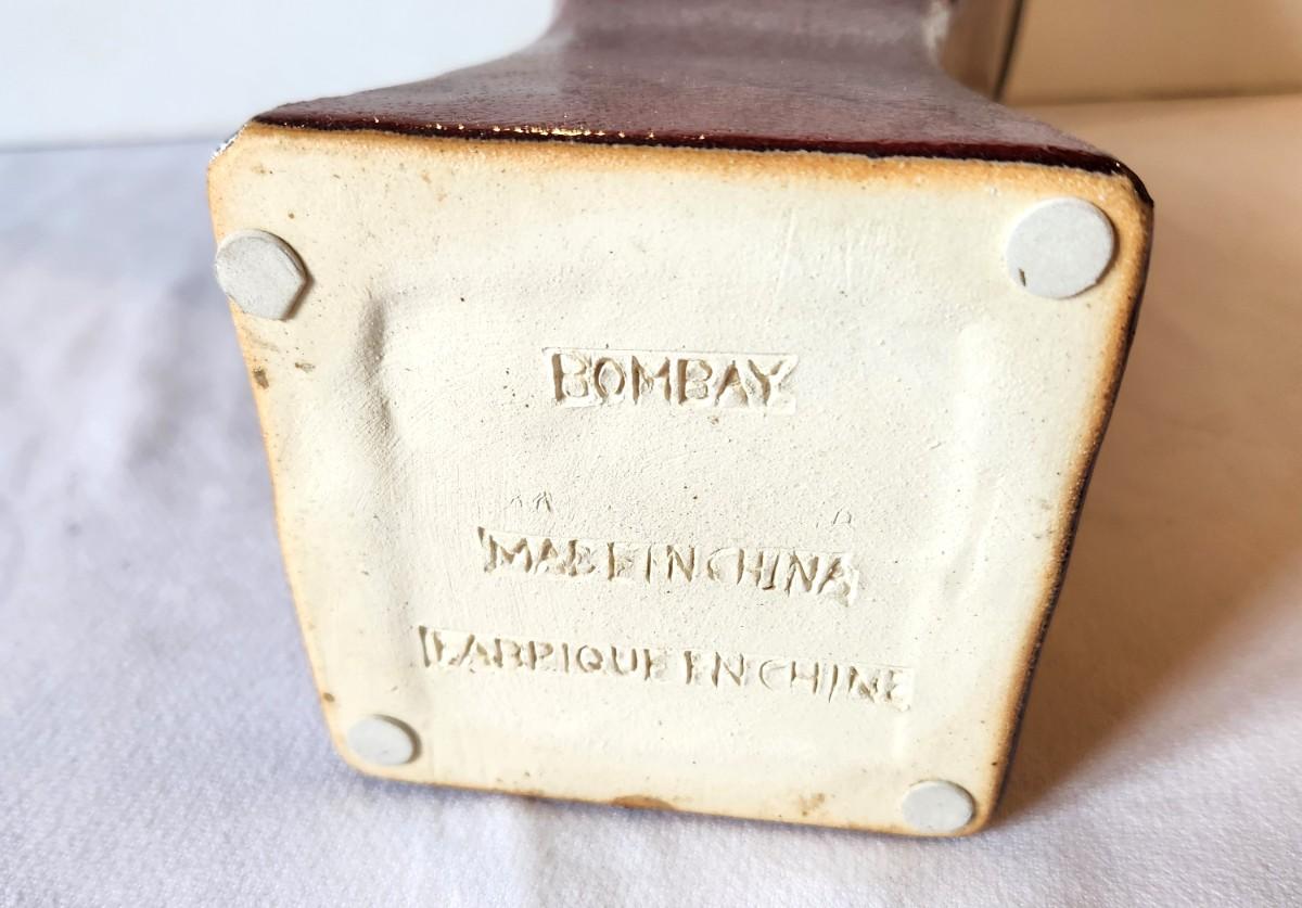 I never knew the Bombay Company (now out of business) ever made pottery, but apparently they did! Nice stoneware drip vase here, 14" tall, fully marked on bottom.