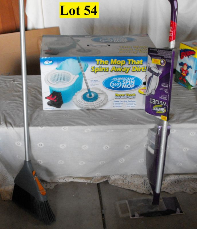 New Broom with cleaning comb, New Swiffer Wet Jet Mop, New “Hurricane” Spin Mop, New Clothes Iron, Hoover Concept One Upright Vacuum with Power Drive/Retractable Cord and and it's Self Adjusting