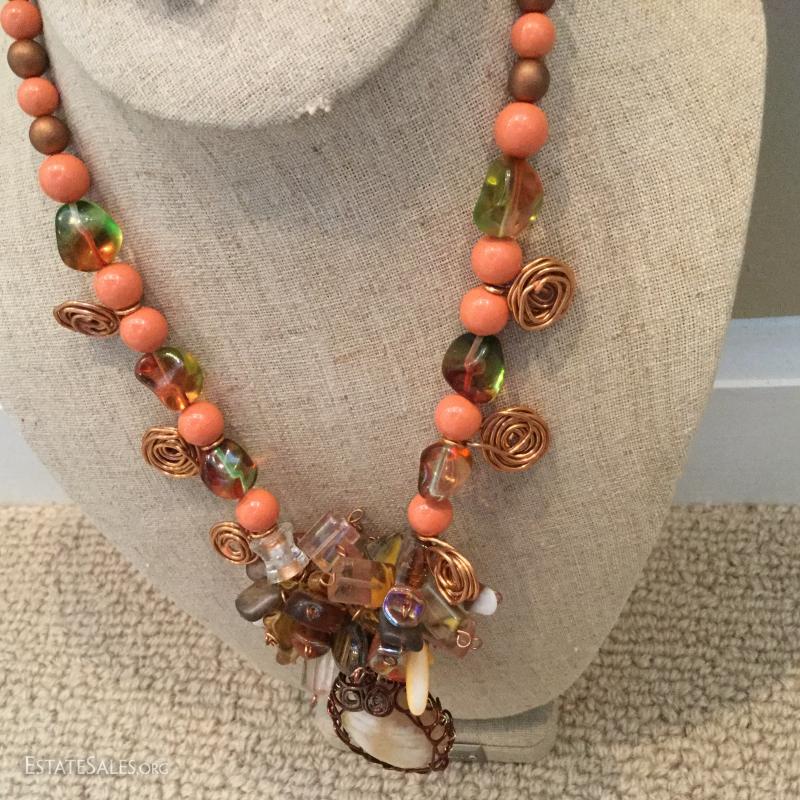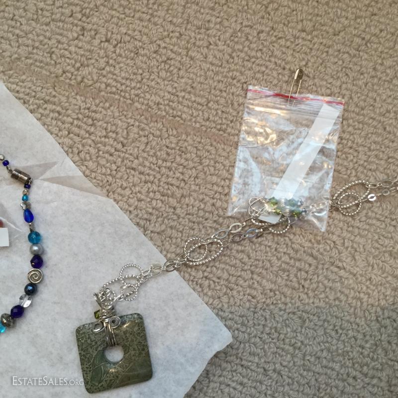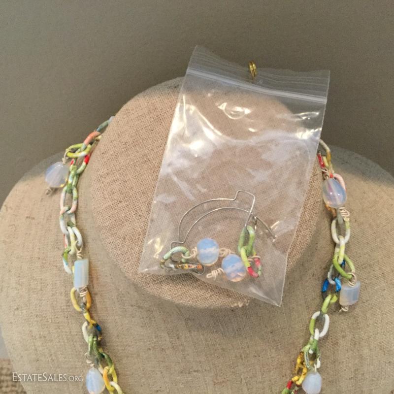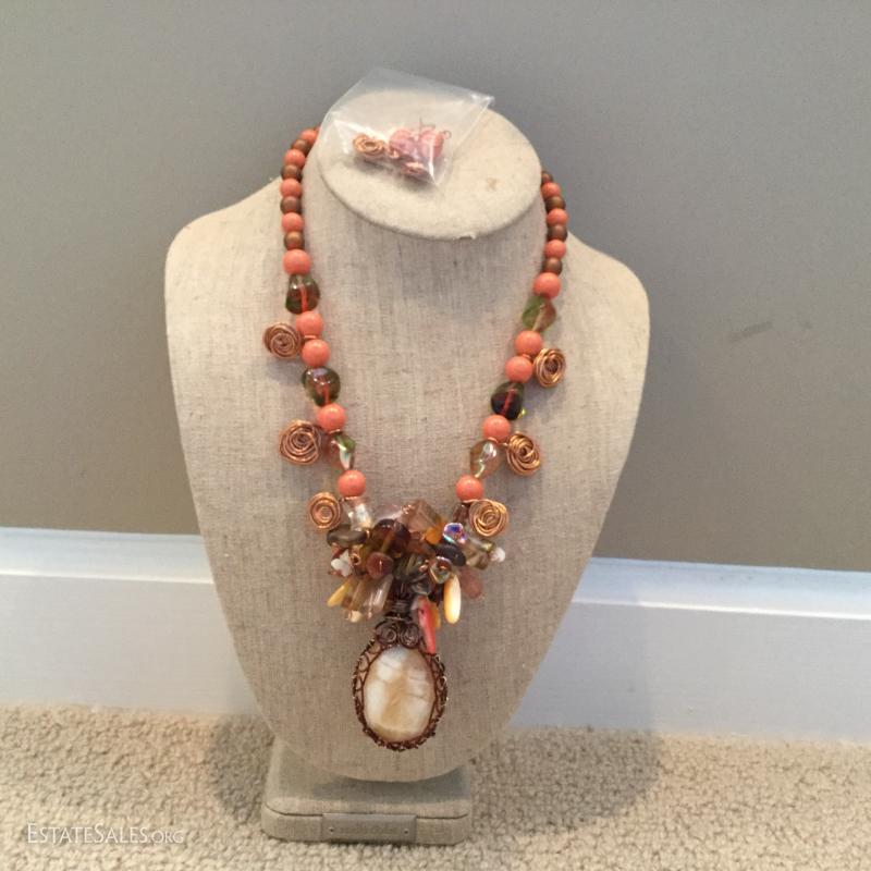 Talented local North Carolina artist created these beauties in her jewelry workshop. Most necklaces have matching earrings. Nice quality one-of-a-kind pieces. Use as is or use beads to create a jewelry masterpiece of your own.