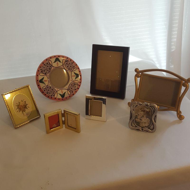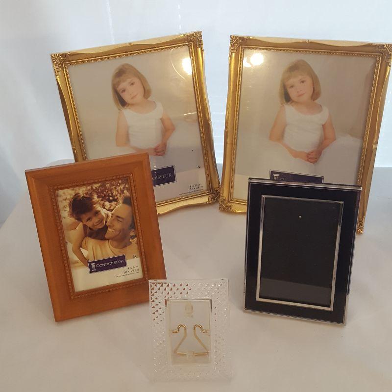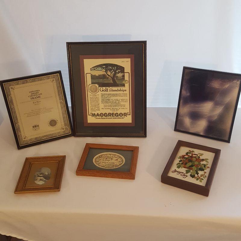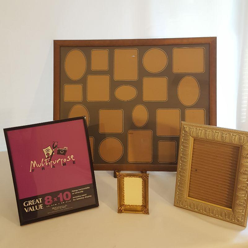 Frames, frames and more frames in all sizes and shapes! This lot was too big for a group shot. Two frames come with a picture already in them ready to go on your wall. See pictures for details.