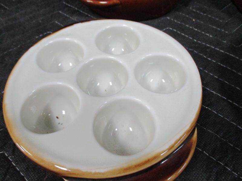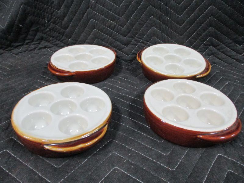 Lot 54 - Lot Of 4 1154 Hall Pottery 6 Deep Well Escargot Mushroom Dishes Brown Cream
