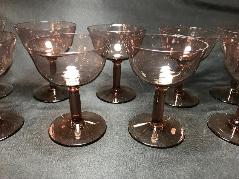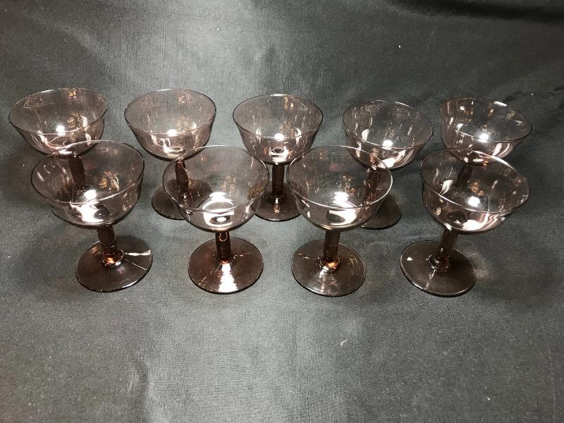 Lot 54- MC Set of Nine Burmese Handblown Brown Glass Cocktail Glasses