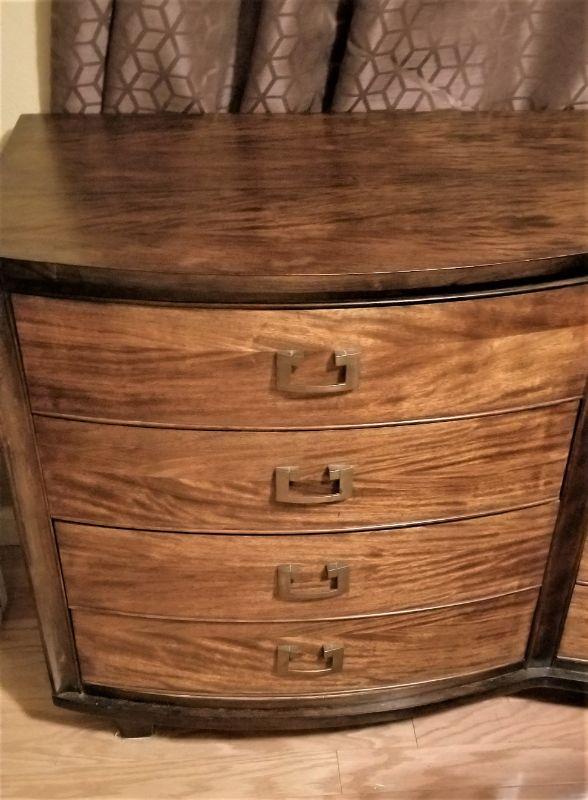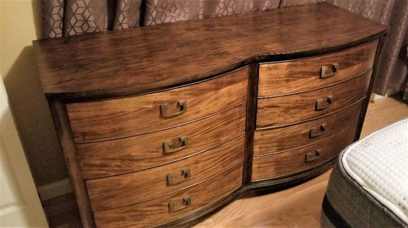 This late 60's dresser was made by the Dixie Furniture Company - no mirror. Has 8 drawers - lots of storage. 56" across, 20" deep, 32" tall. Good used condition.