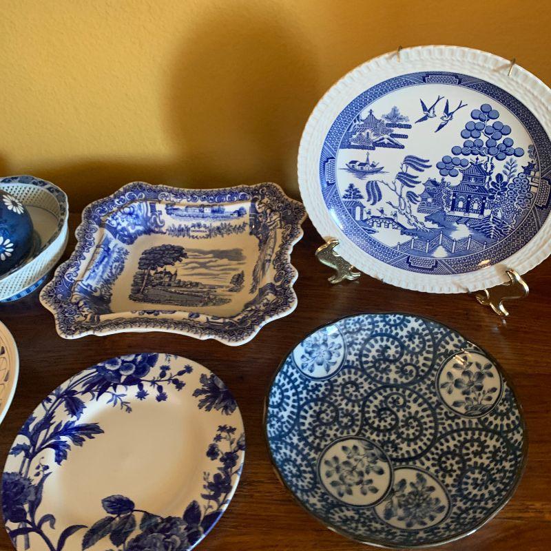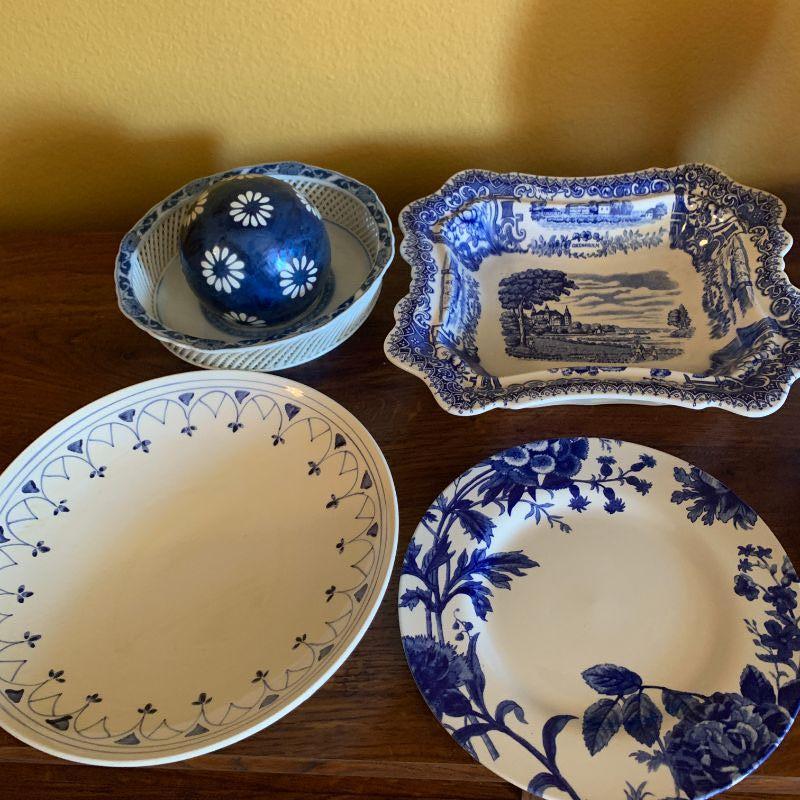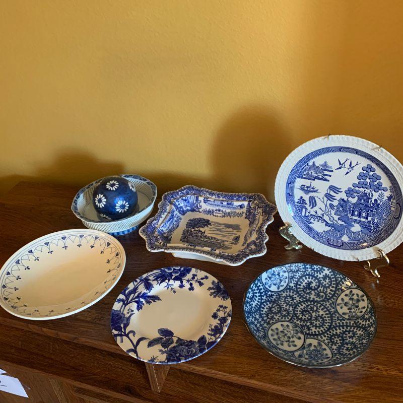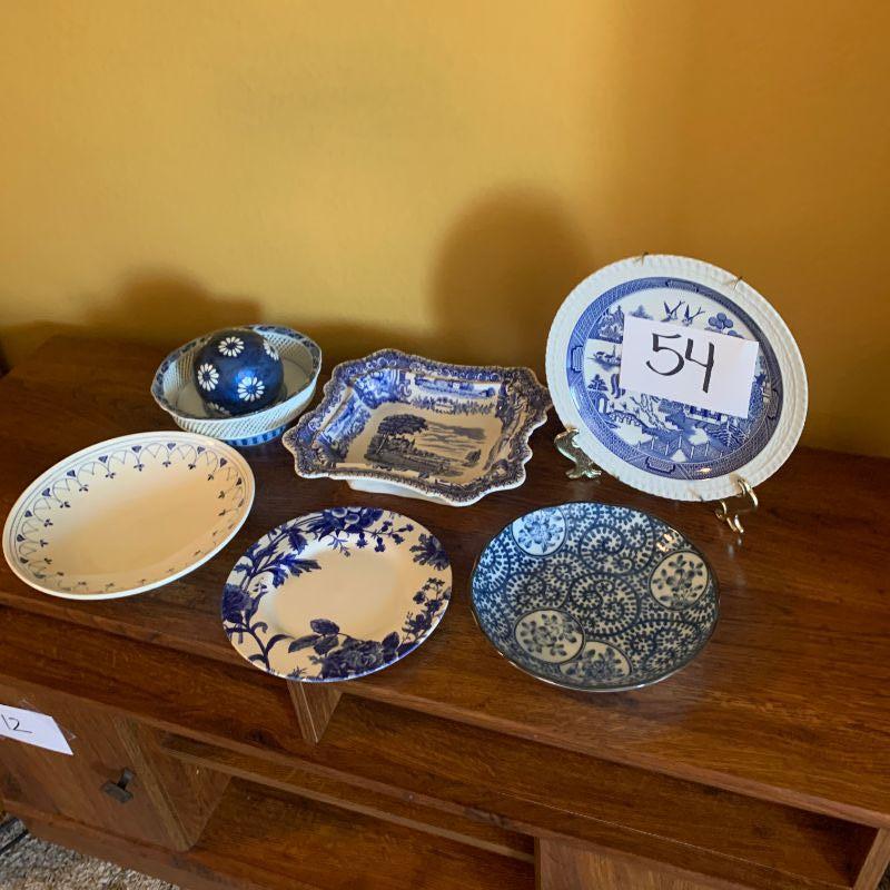 Lot 54 miscellaneous blue and white plates and ball decorations