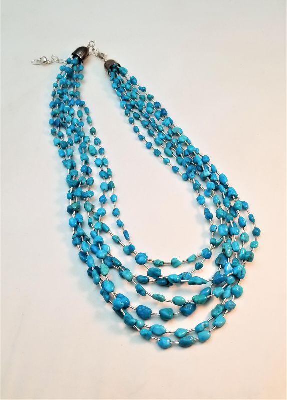 Lot #54  Natural Turquoise and Sterling Silver Multi-Strand Necklace
