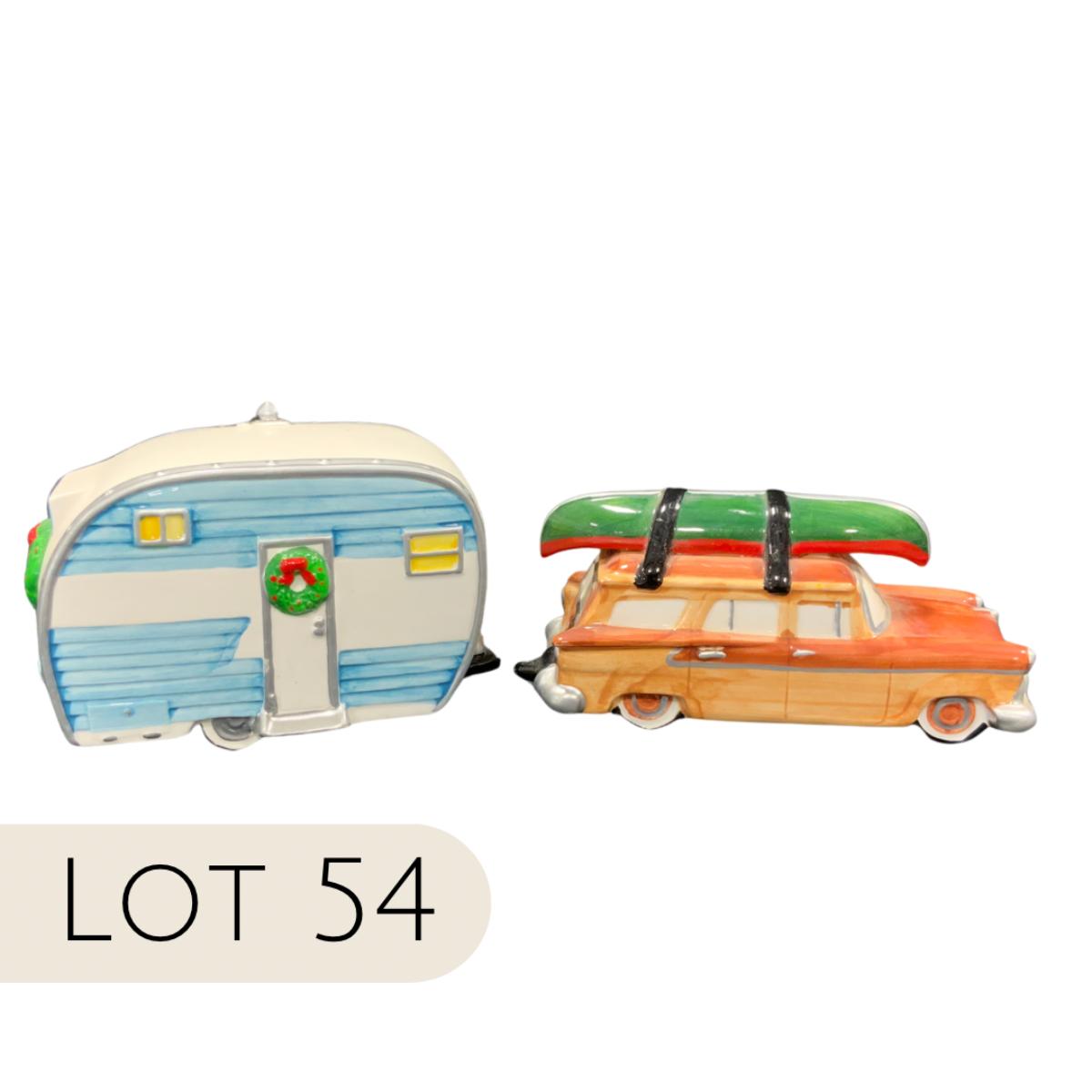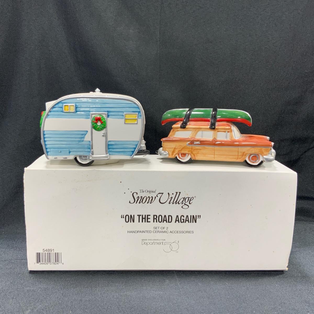 There they go, On the Road Again. Not quite the Long Long Trailer, but it will do. Nice set from Department 56. A good addition to any Snow Village set up. Please see photos for details and condition. ::: Shipping is available on this lot. If you require shipping you must let us know at the close of the auction. We will coordinate with you after the item has been won. Shipping fees will include insurance up to or exceeding the value of all items being mailed. If you have any questions regarding this lot please contact the auctioneer either via this website, by direct email or by phone. PICK UP TIMES and other important information can be found in the TERMS and DESCRIPTION of the auction. Please take a look for pertinent information. Thanks! Any condition statement is given as a courtesy to a client, is an opinion, and should not be treated as a statement of fact. Reference to condition written, oral or within a condition report shall not be regarded as a full account of condition and may not include all defects, alterations, or restorations. Absence of a condition report does not imply a lot is flawless or lacking imperfections or damage. Katherine’s Auction & Appraisal Service shall have no responsibility for any error or omission. Returns shall not be accepted on the basis of condition.