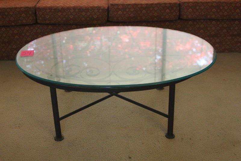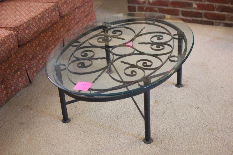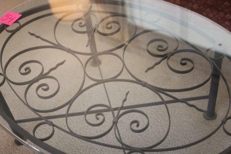 Lot 54 Oval Iron Base, Glass Top Coffee Table 16"x47"