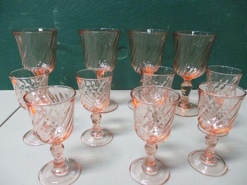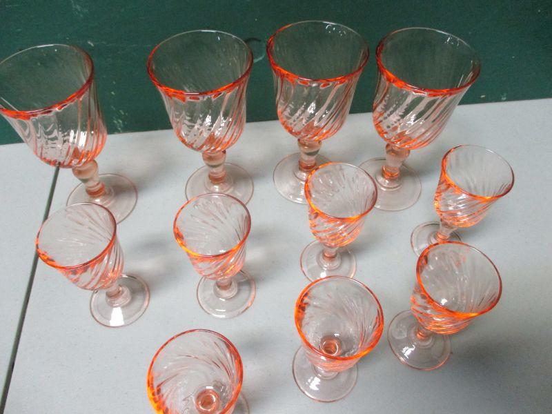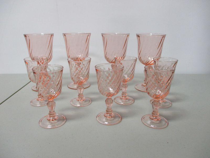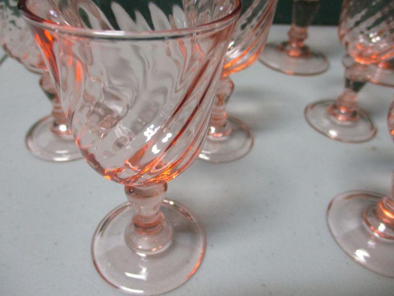 Lot 54 - Pink Wine & Sherry Glass - French Swirl Design