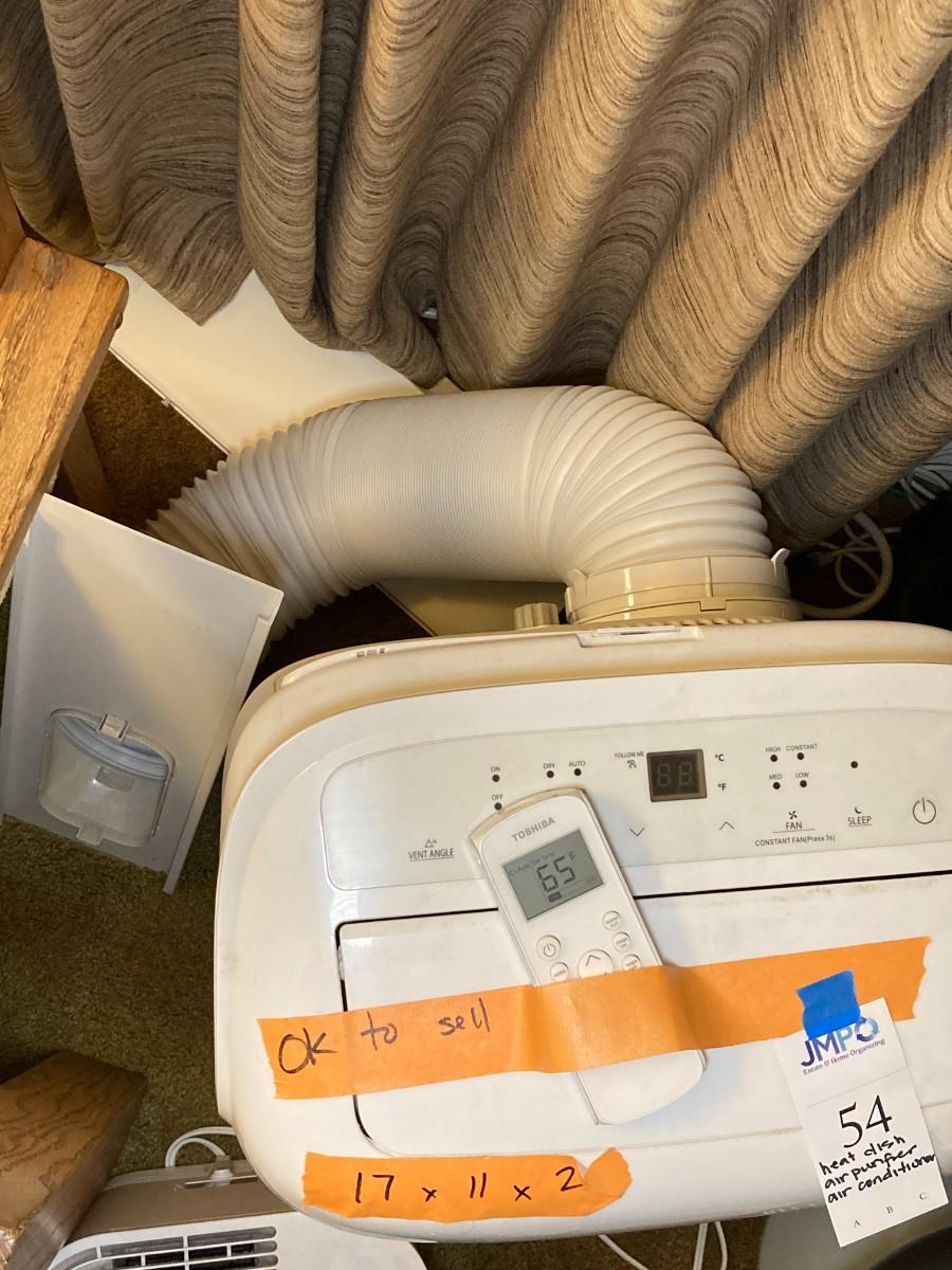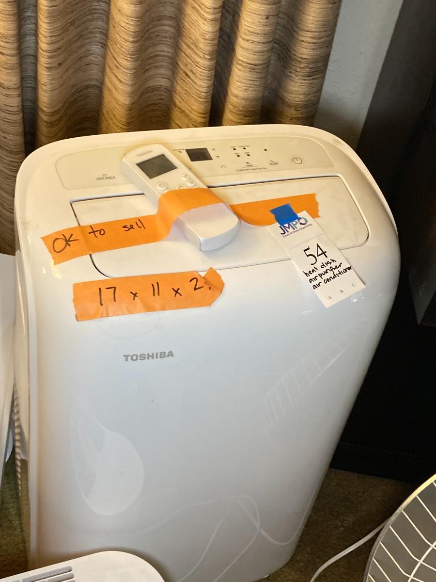Toshiba AC portable unit with exhaust flexible tubing, window insert and remote control. 17x11.24"