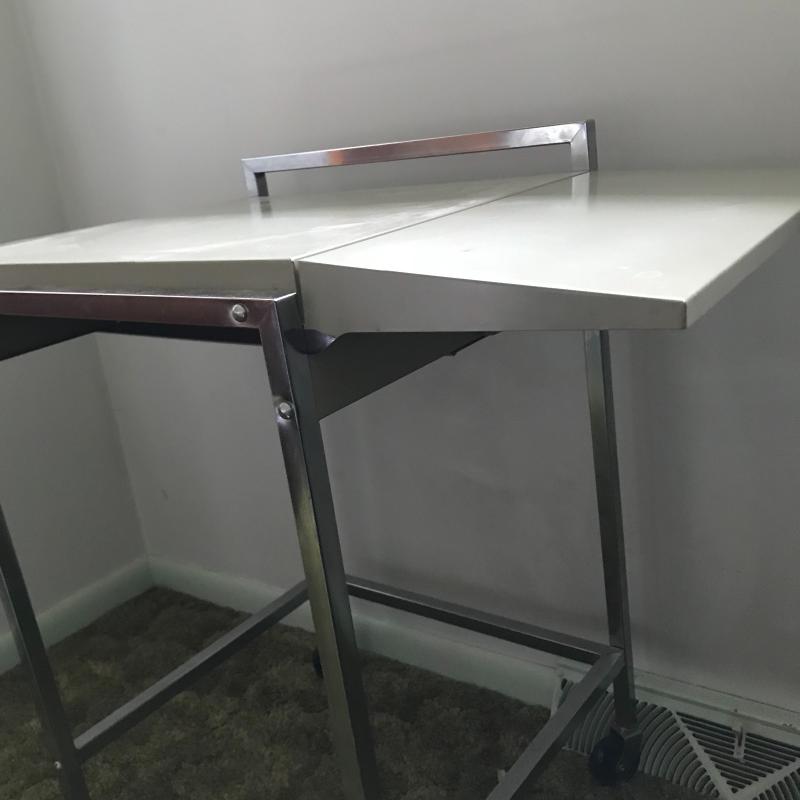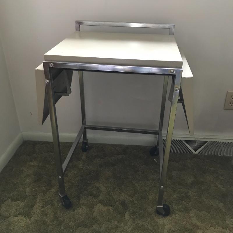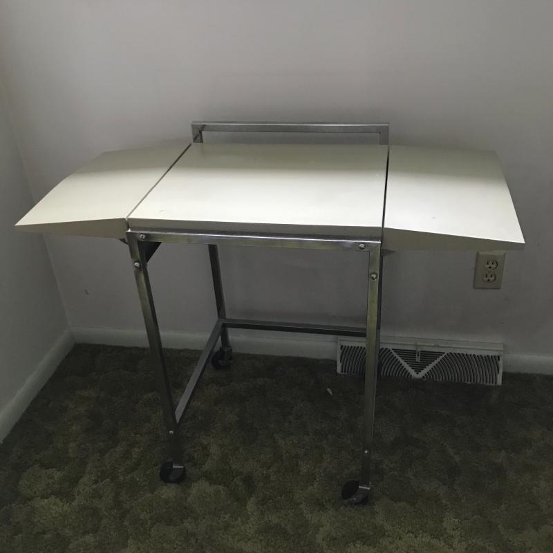 Lot includes sturdy vintage metal rolling cart. Approx. 22”l x 17.5”w x 29.5”h. 36” long when sides are extended. No shipping available. Local pickup only in Asheville, NC.