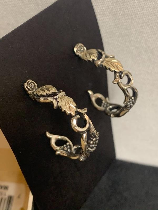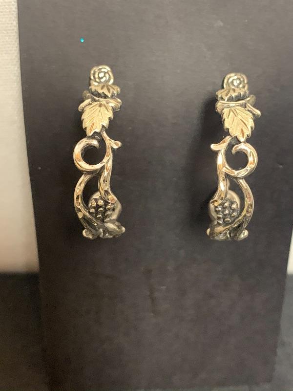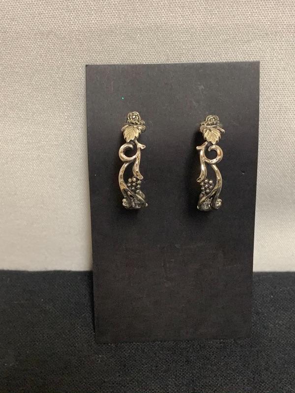 LOT #54 STERLING HOOP EARRINGS WITH LEAVES 1" HOOP