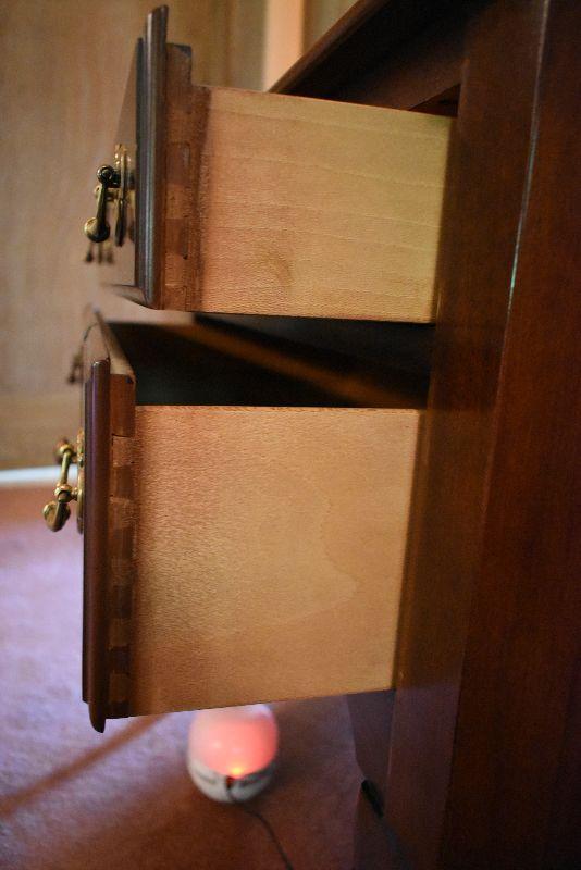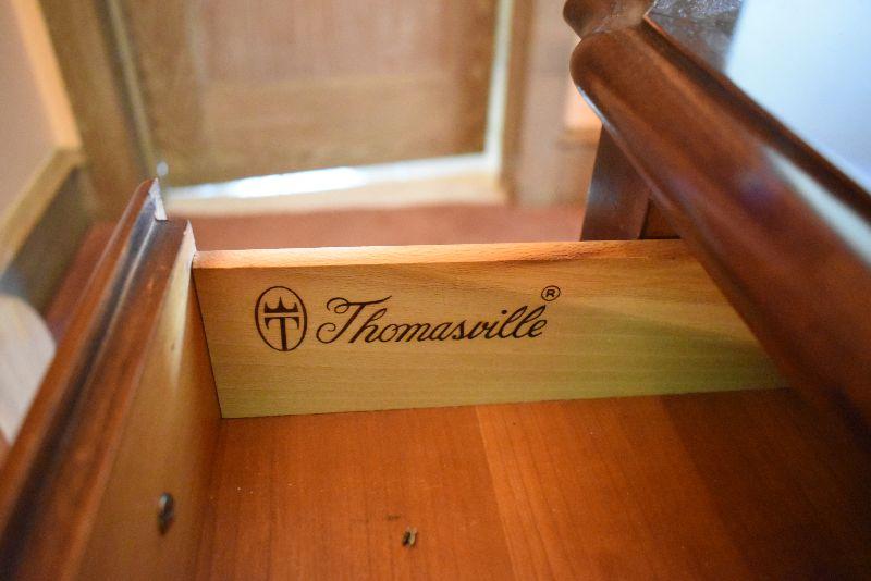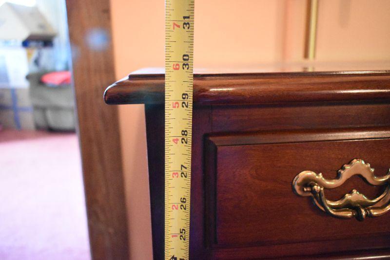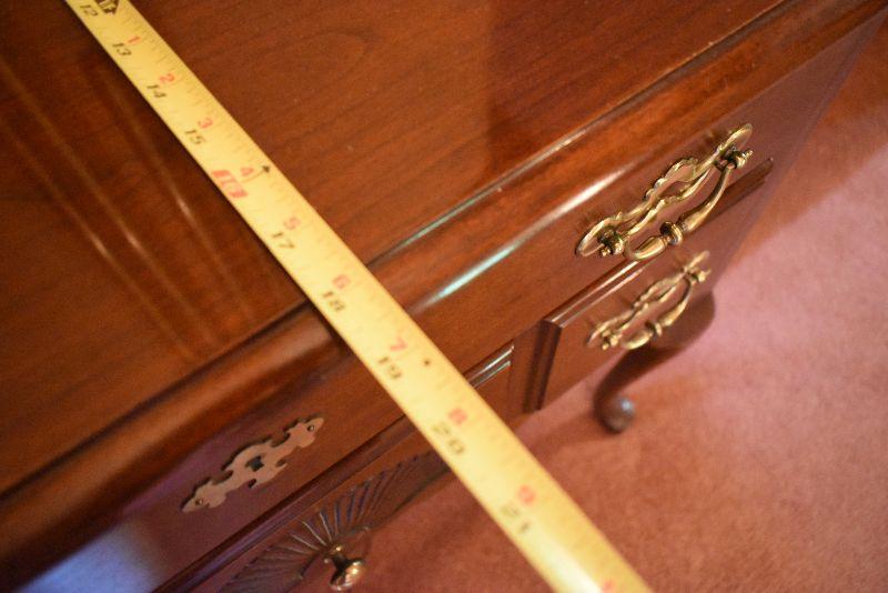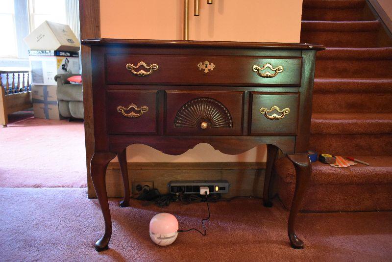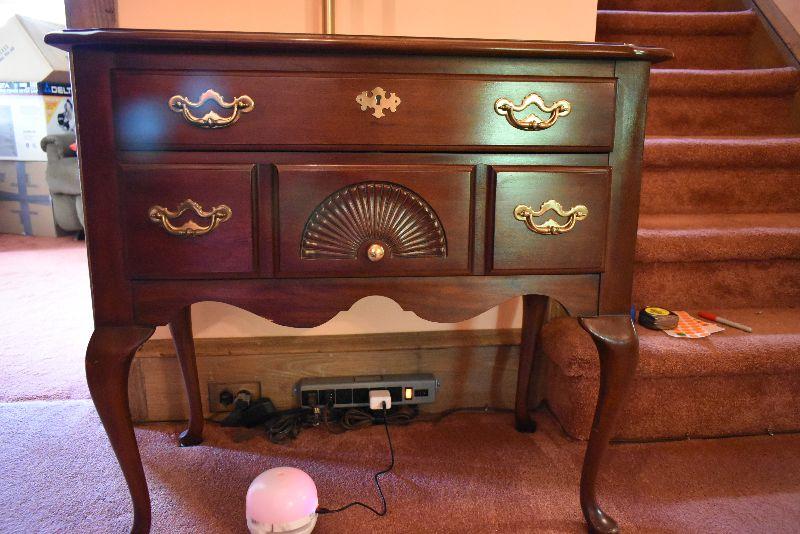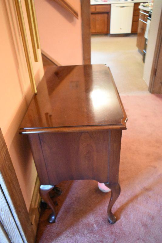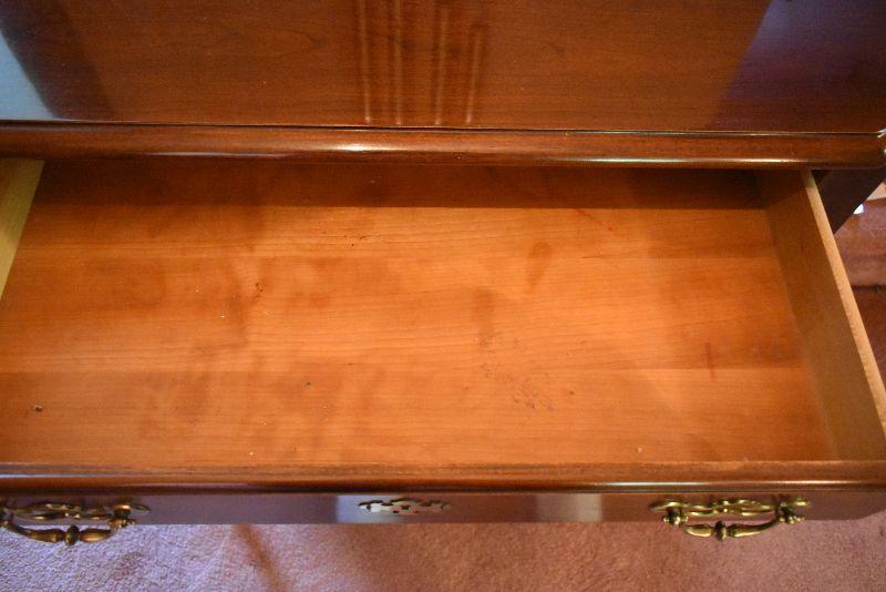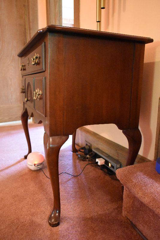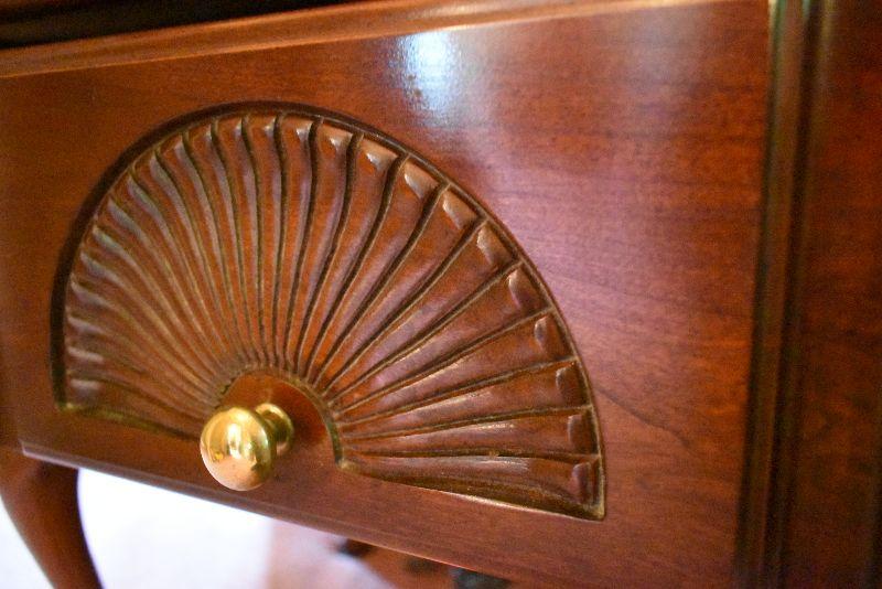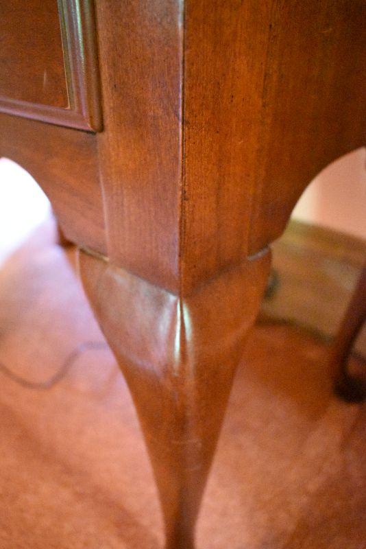 Queen Anne cherry wood table with two drawers by Thomasville Furniture. Bring help to move.