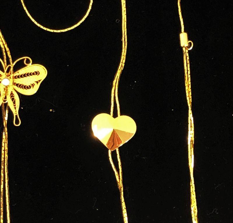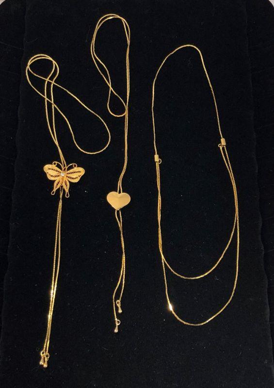 The heart and the butterfly slide necklaces just make the necklace tighter or looser when wearing, but the other necklace allows you the option to have a long single strand necklace or adjust it to look like a multi-strand necklace. All are in excellent condition with no maker's marks.