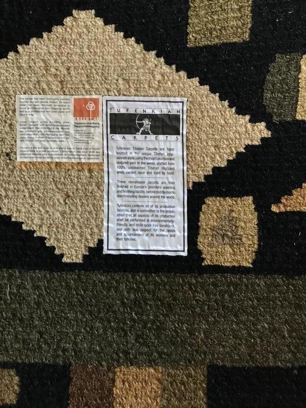 Tufenkian hand knotted, 100% Tibetan unbleached Tibetan Highland wool. Measures 11' 4 x 8'.75